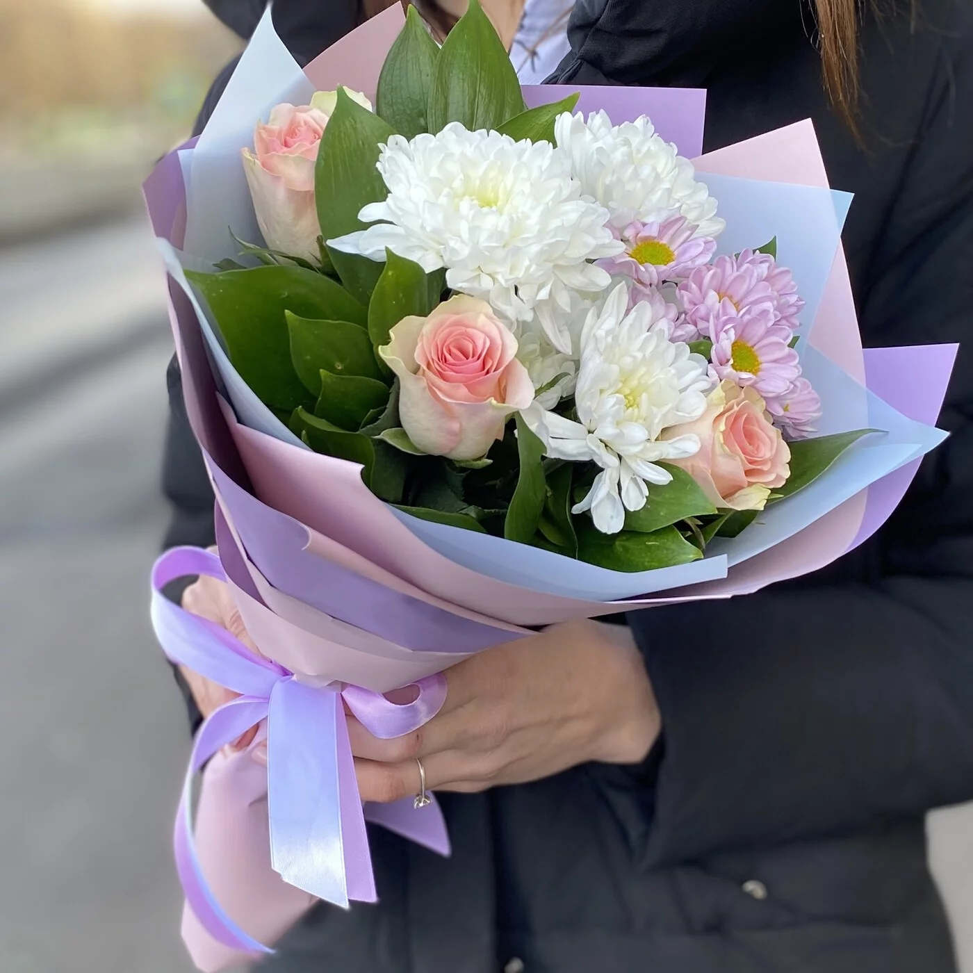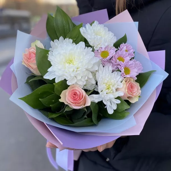 Этот прелестный букет станет прекрасным подарком, как для Вашей маленькой принцессы, так подходящим комплиментом для для дамы любого возраста. Изумительное сочетание нежнейших оттенков в этом букете, будет уместно в любой ситуации. Вы можете купить этот букет в нашем магазине, и быть уверенными, в том что этот букет будет долго радовать своей свежестью.