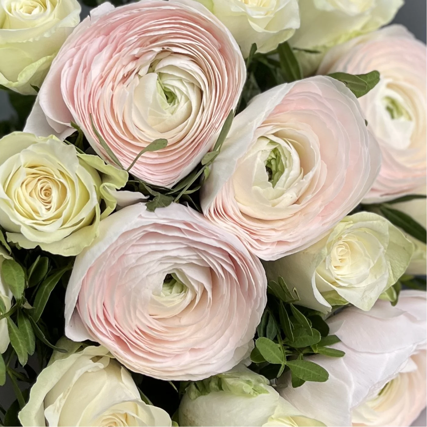 Букет ранункулюсов Ханой и белых роз