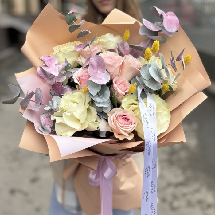 Пышный букет из роз отлично подойдет в качестве подарка для Вашей любимой в день рождения.