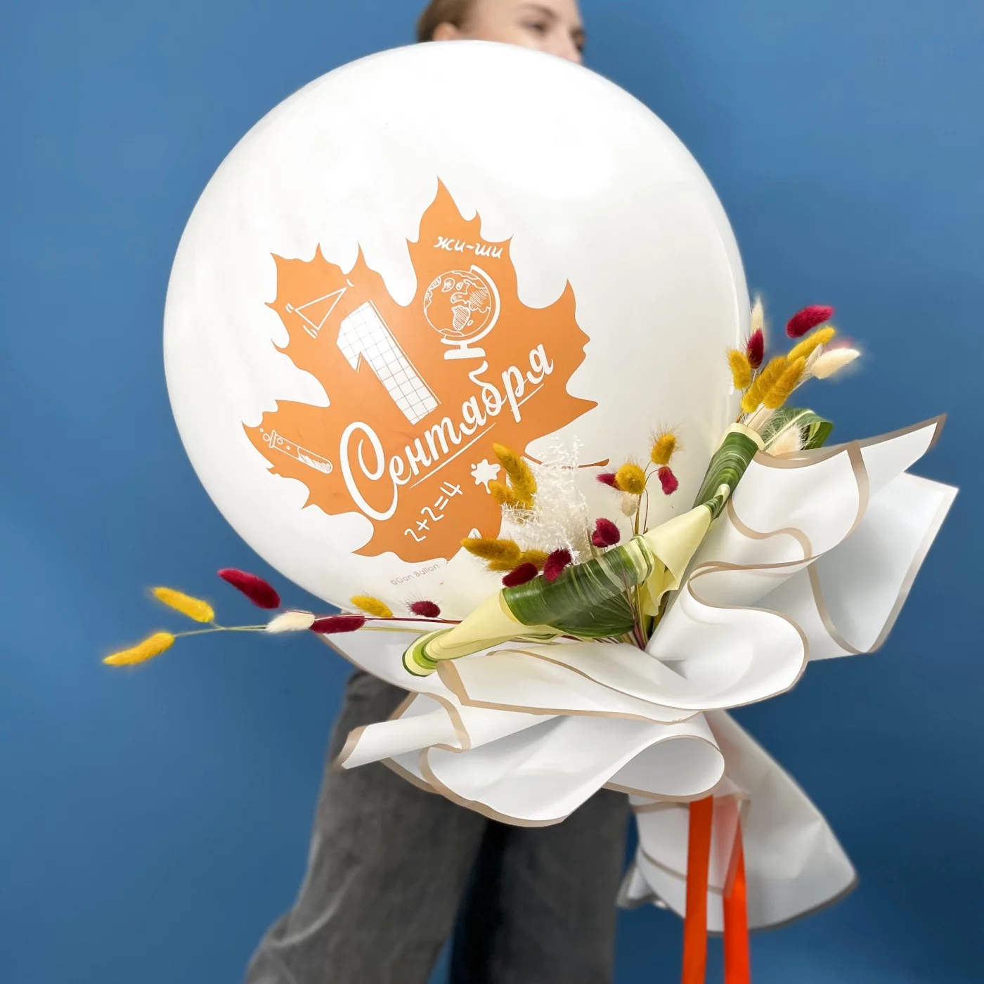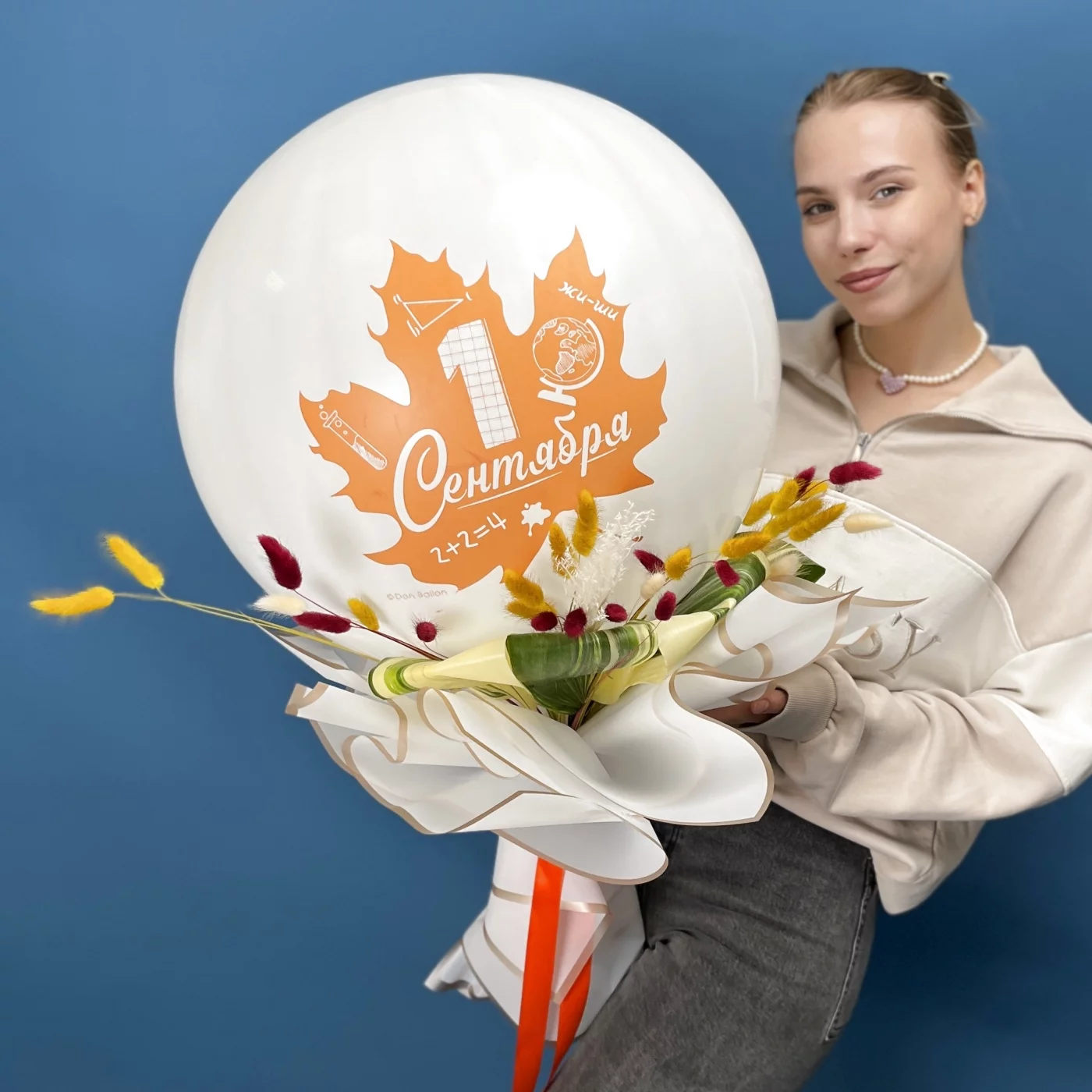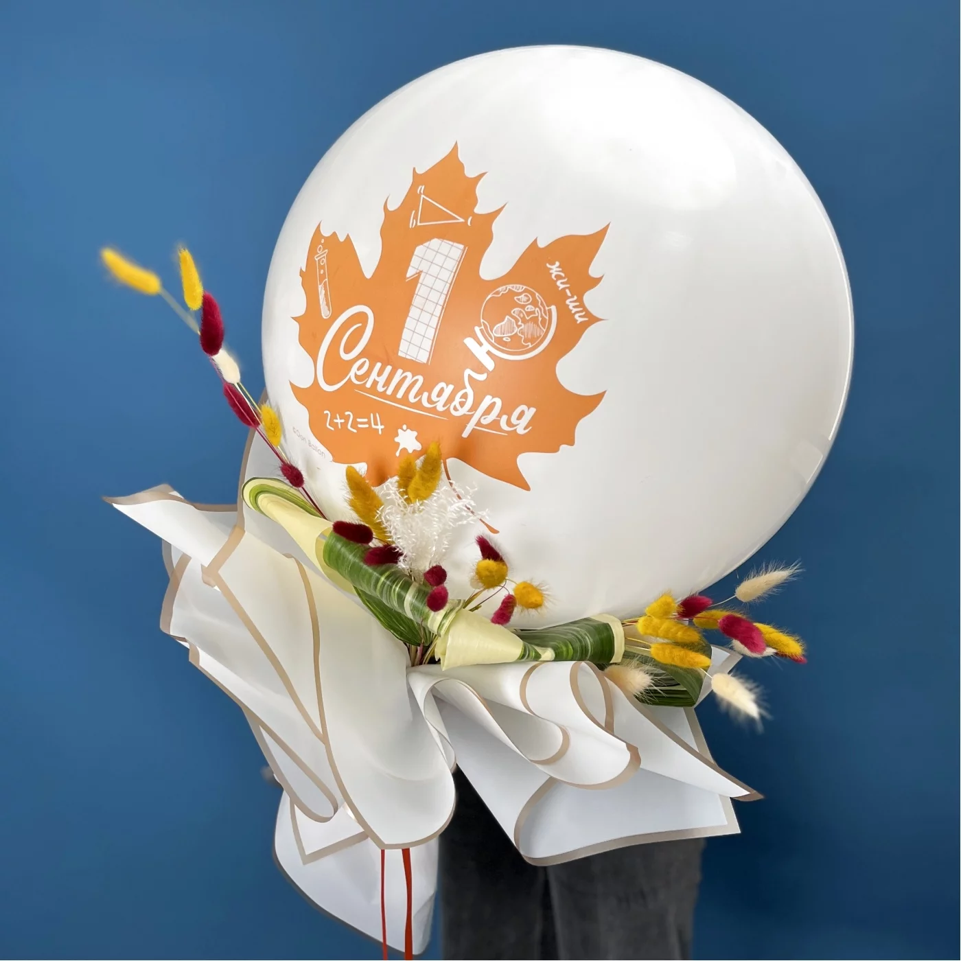 Букет с шаром на 1 сентября — это современный, яркий и очень праздничный подарок, который приведет в восторг любого школьника.