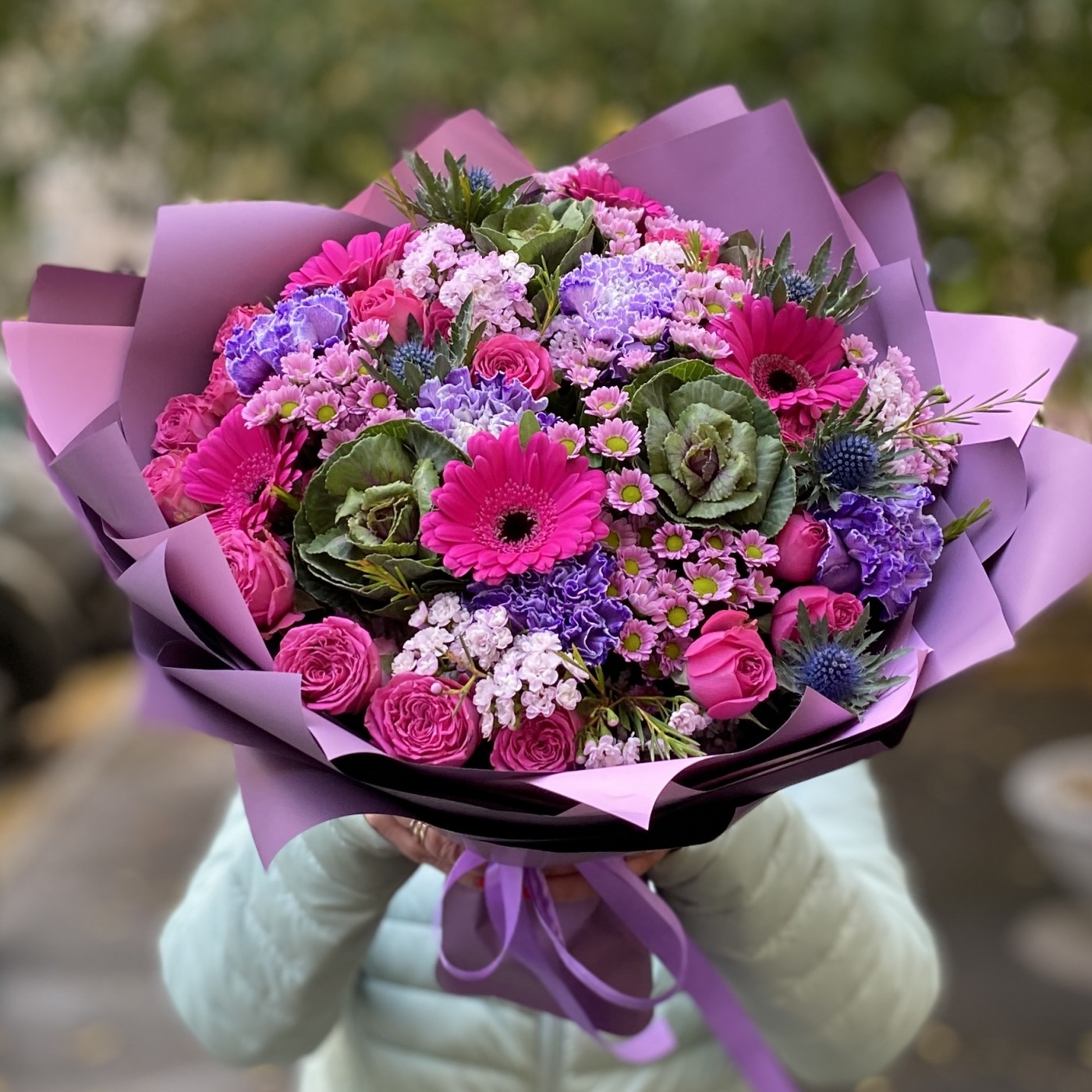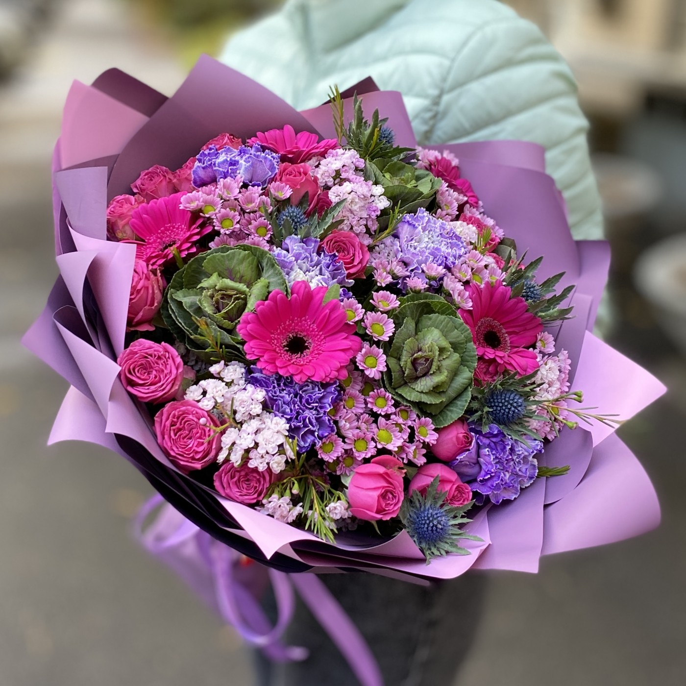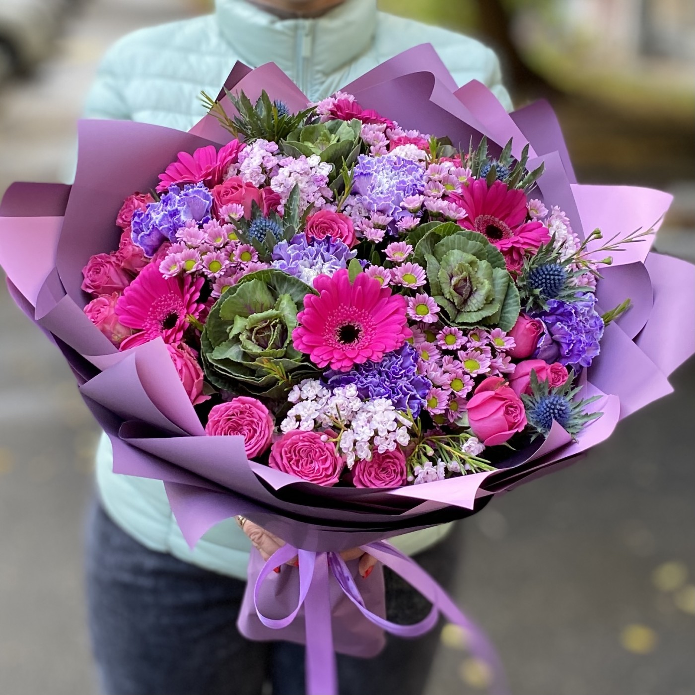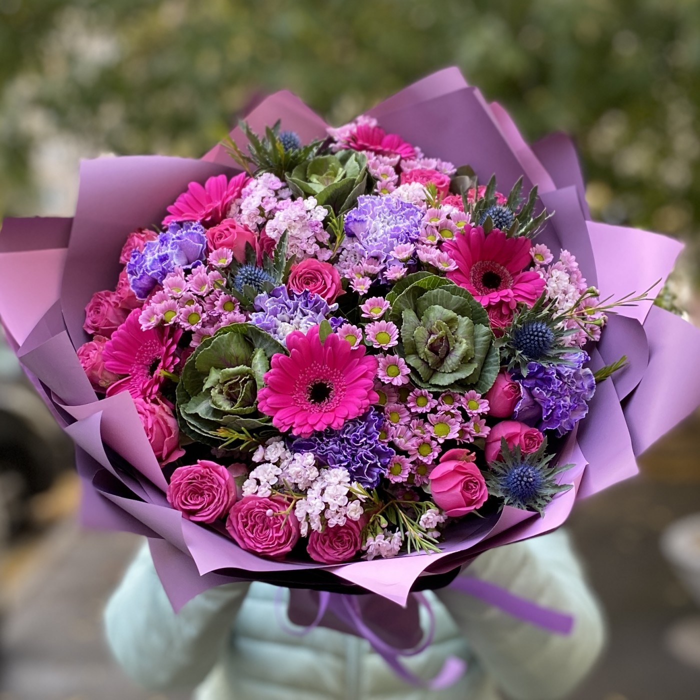 Яркий сборный букет обязательно подарит своей получательнице прекрасное настроение.