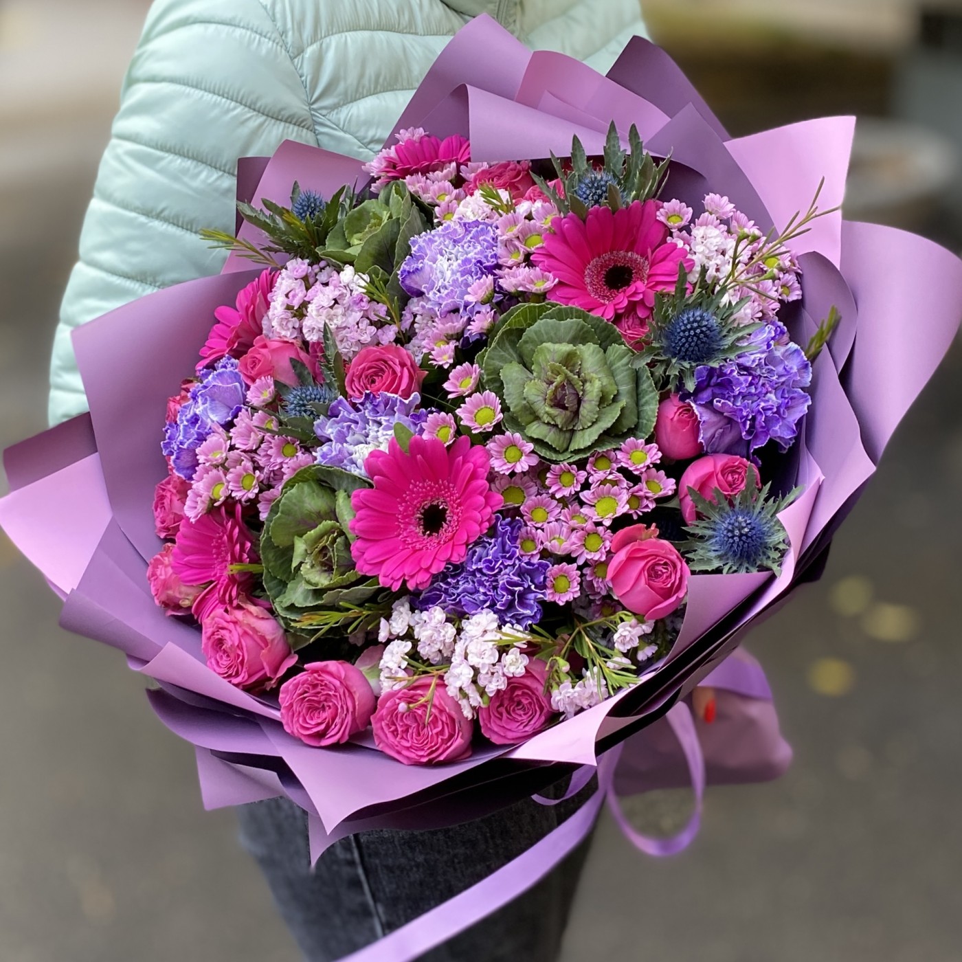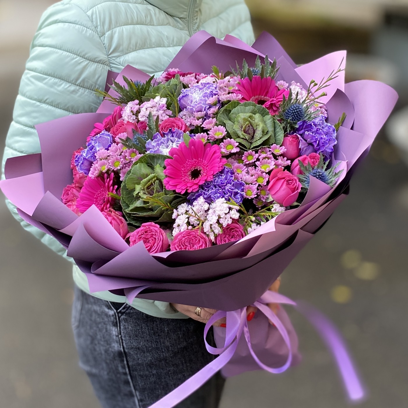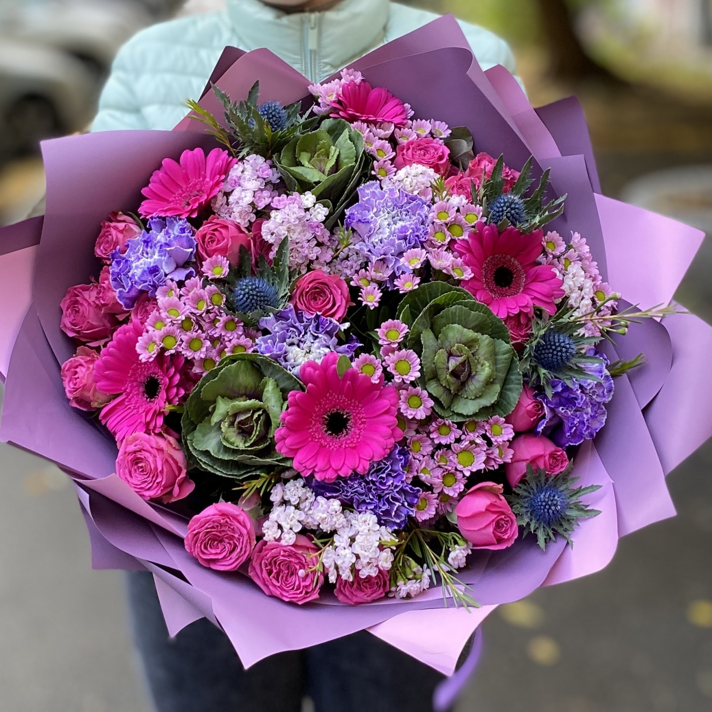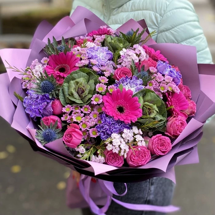 Яркий сборный букет обязательно подарит своей получательнице прекрасное настроение.