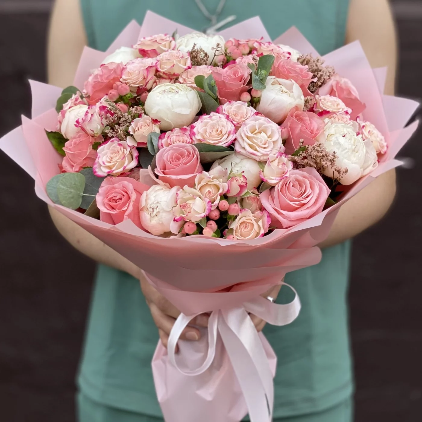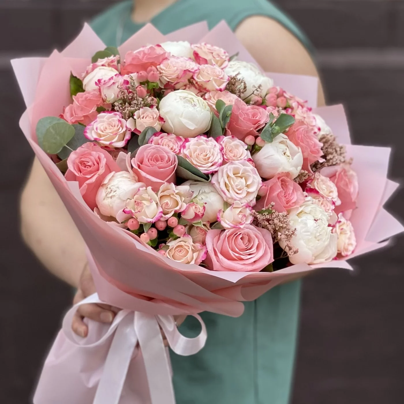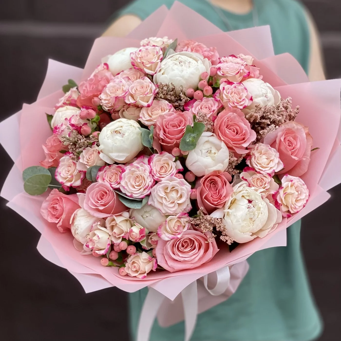 Нежно-розовый букет будет отличным подарком для вашей любимой девушки.
