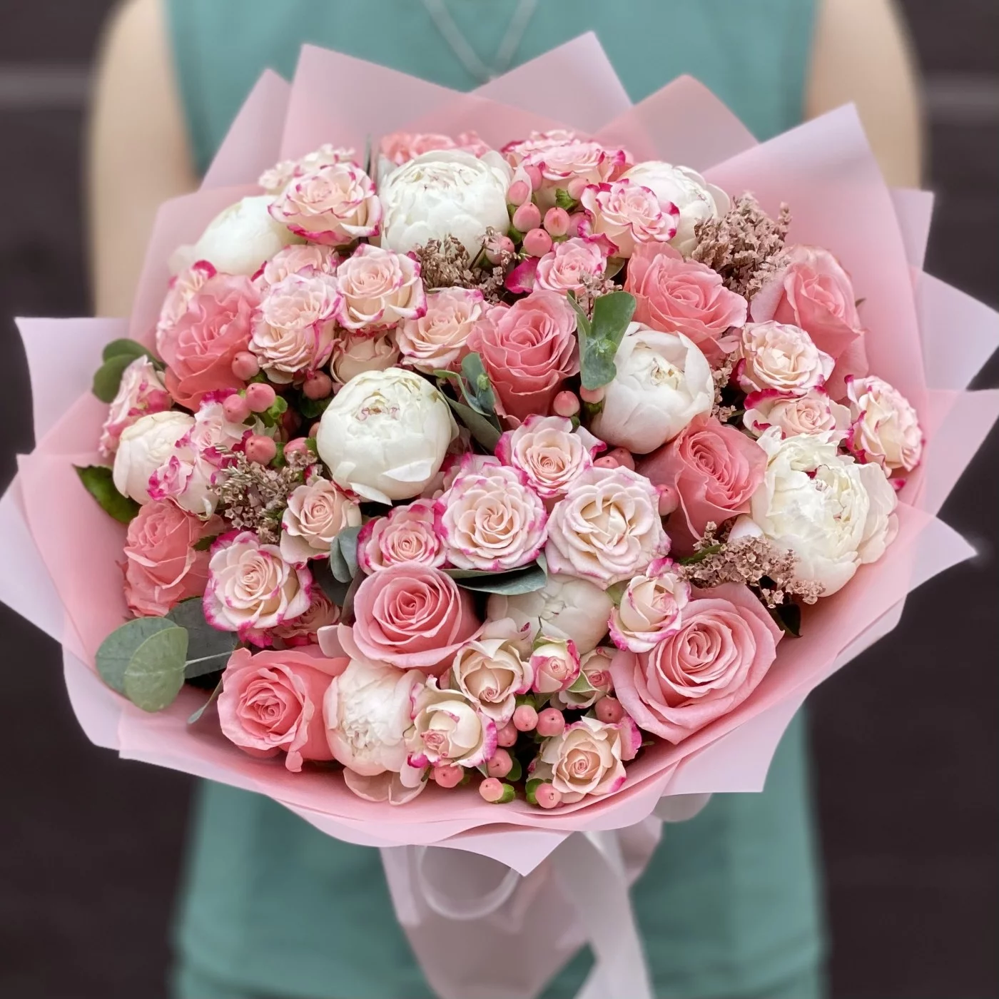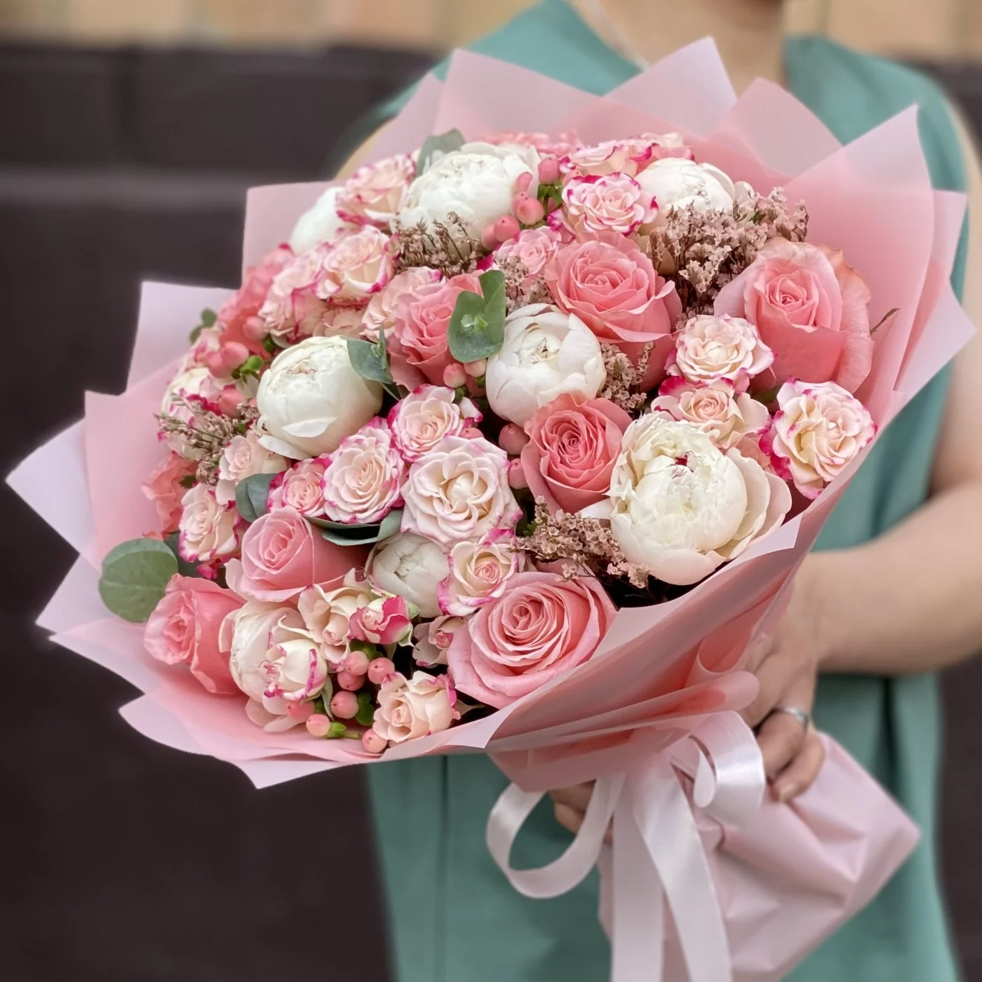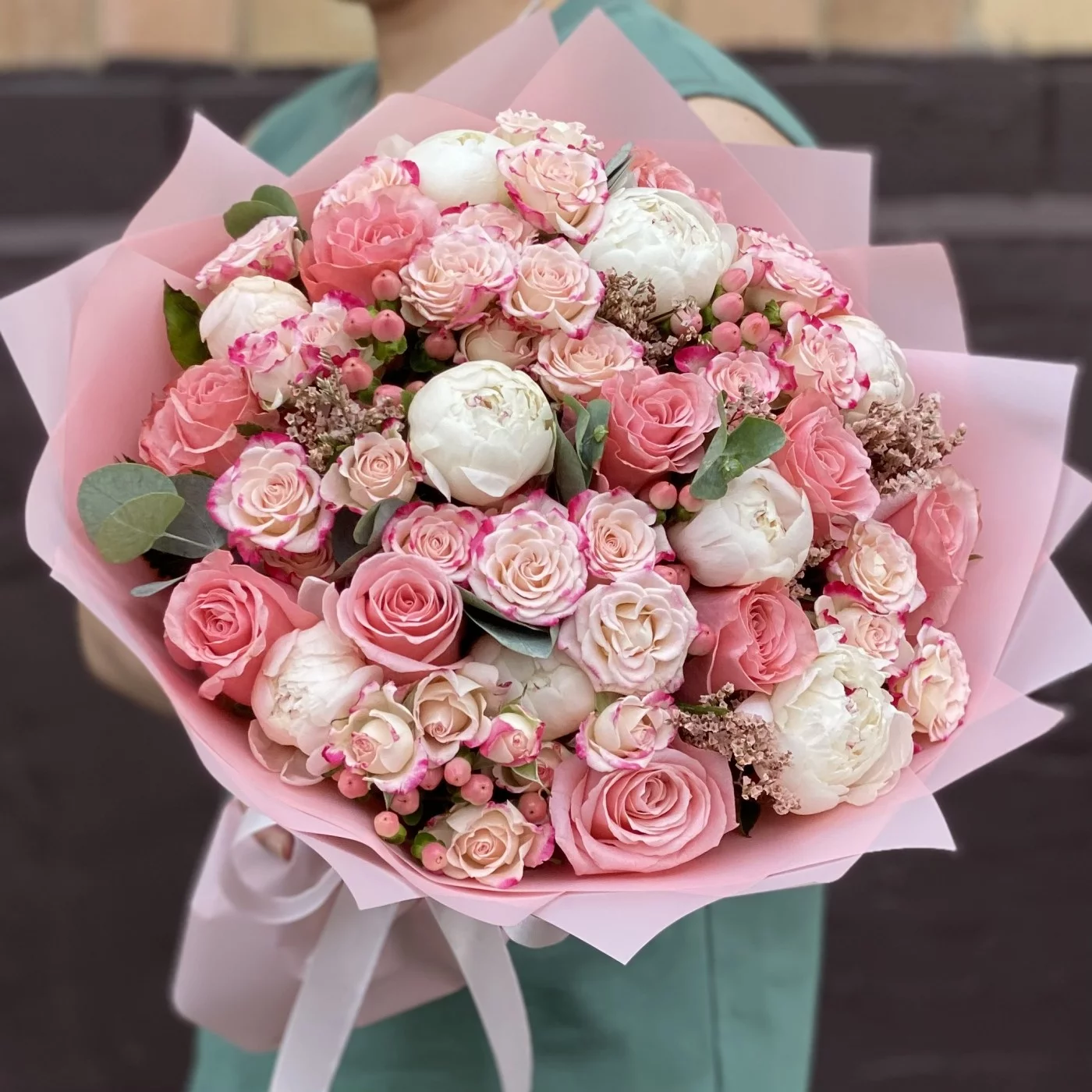 Нежно-розовый букет будет отличным подарком для вашей любимой девушки.