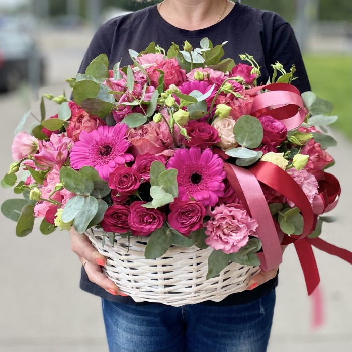 Цветы в корзине Малиновый MIX