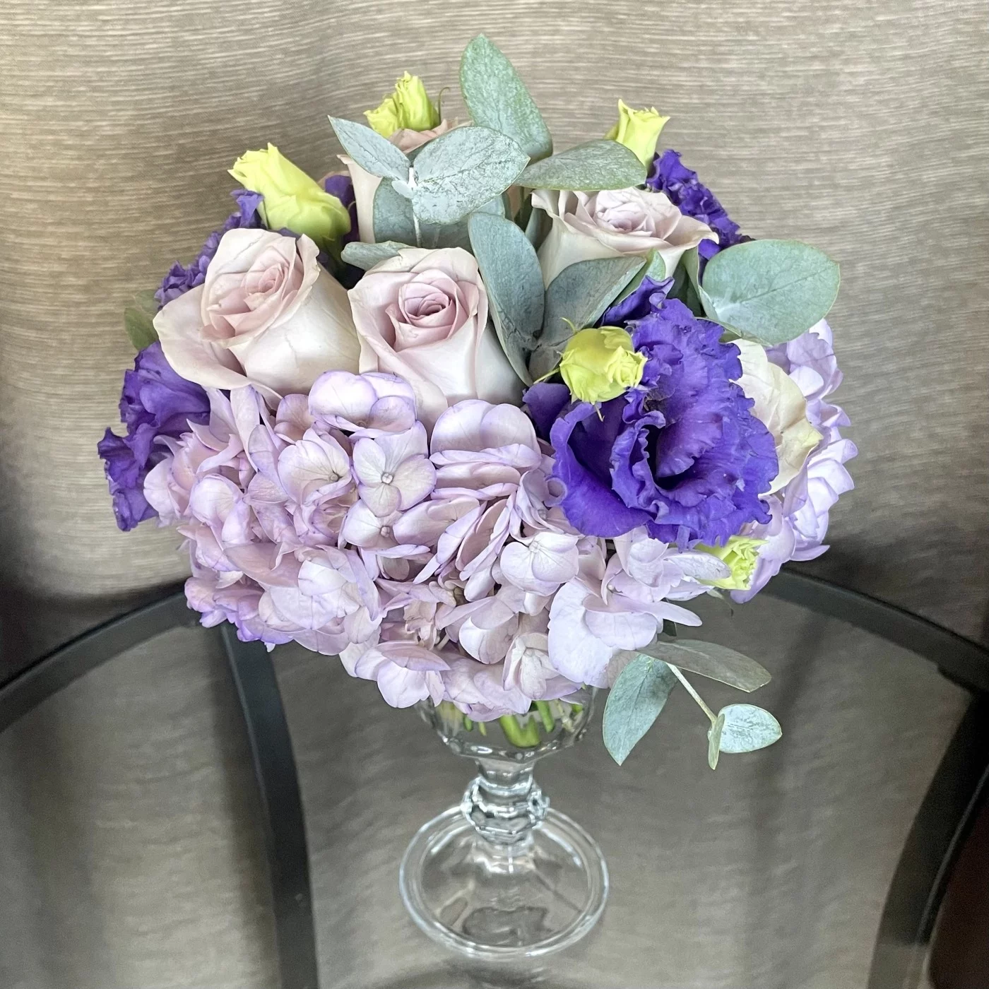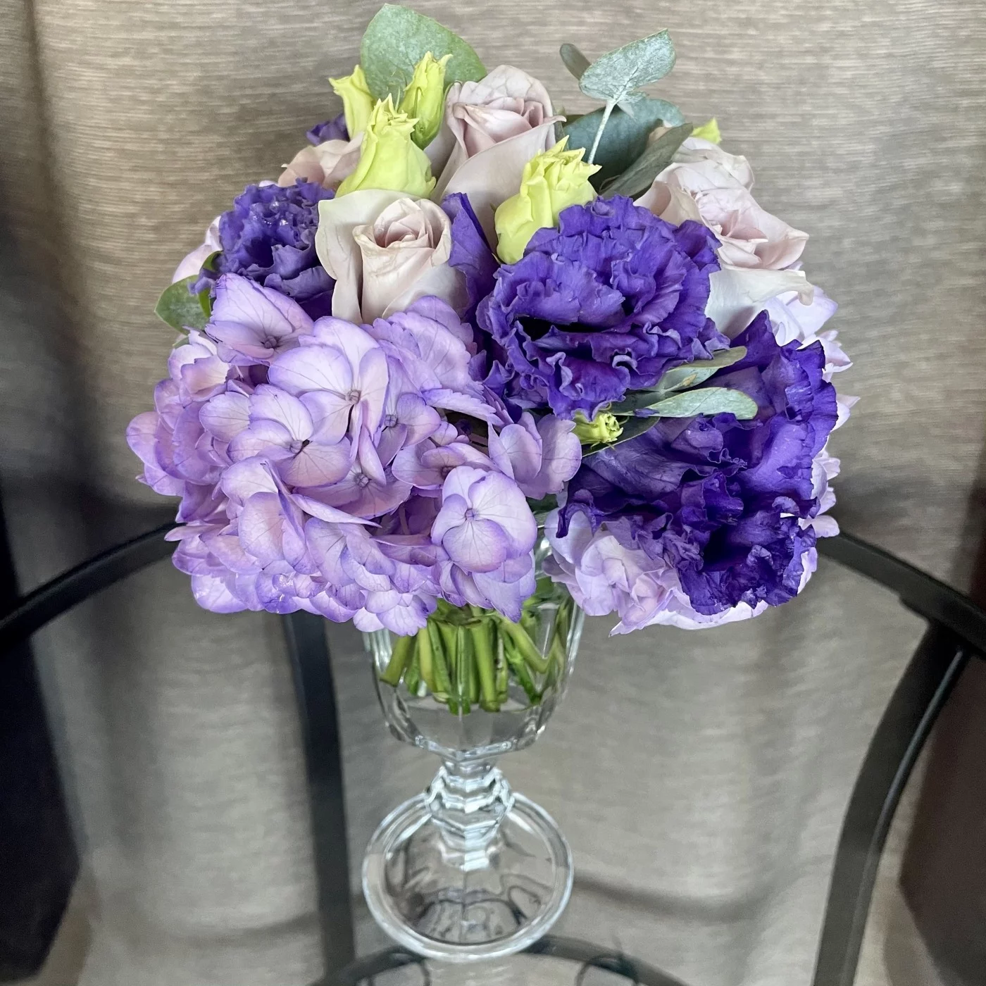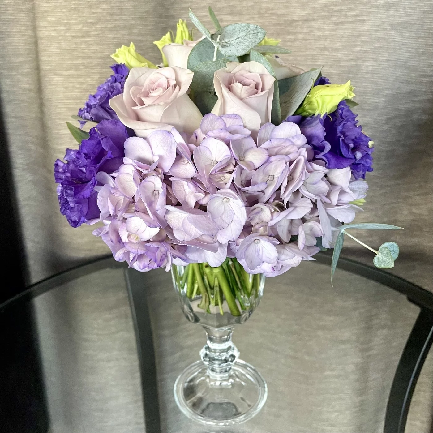 Композиция из цветов в бокале сиреневая
