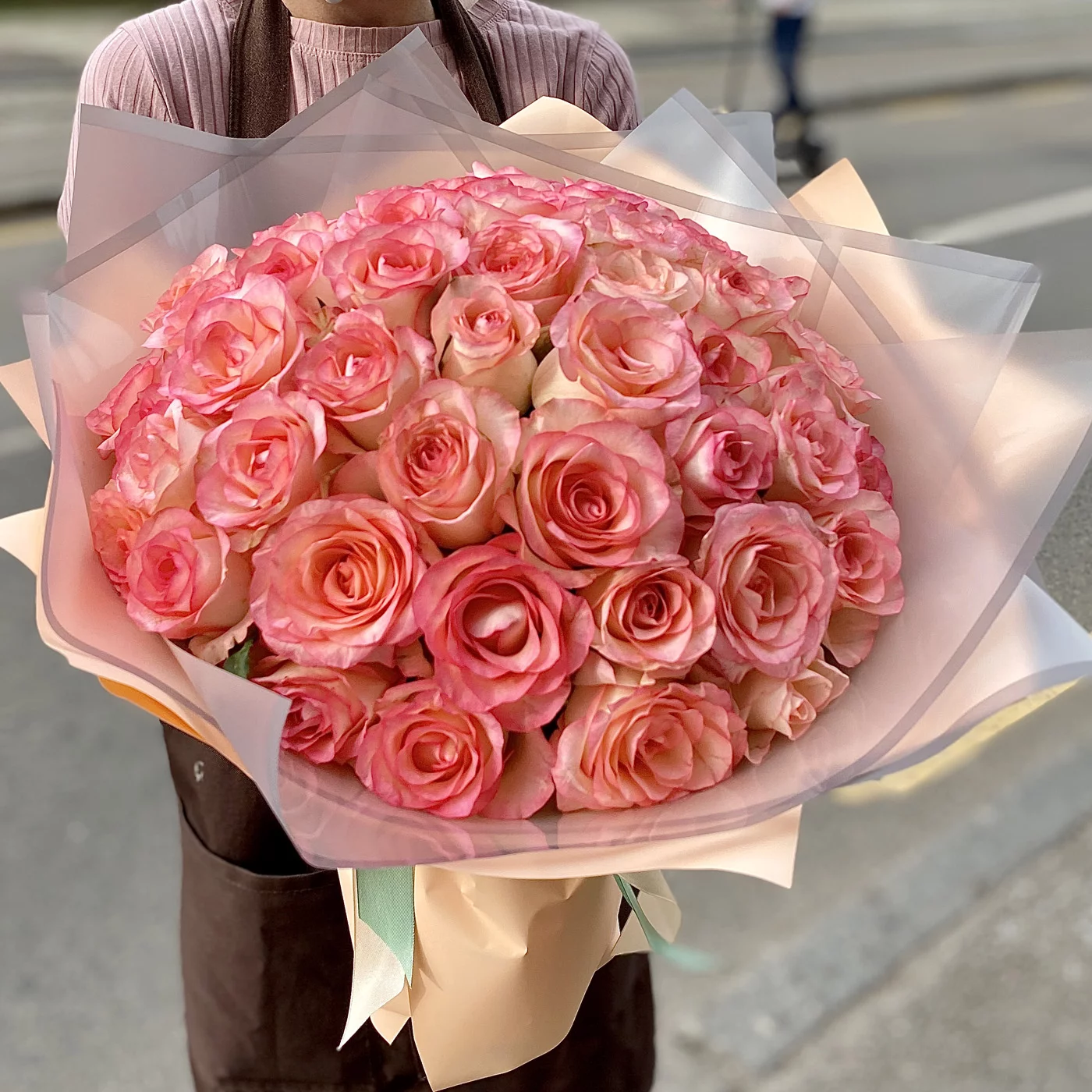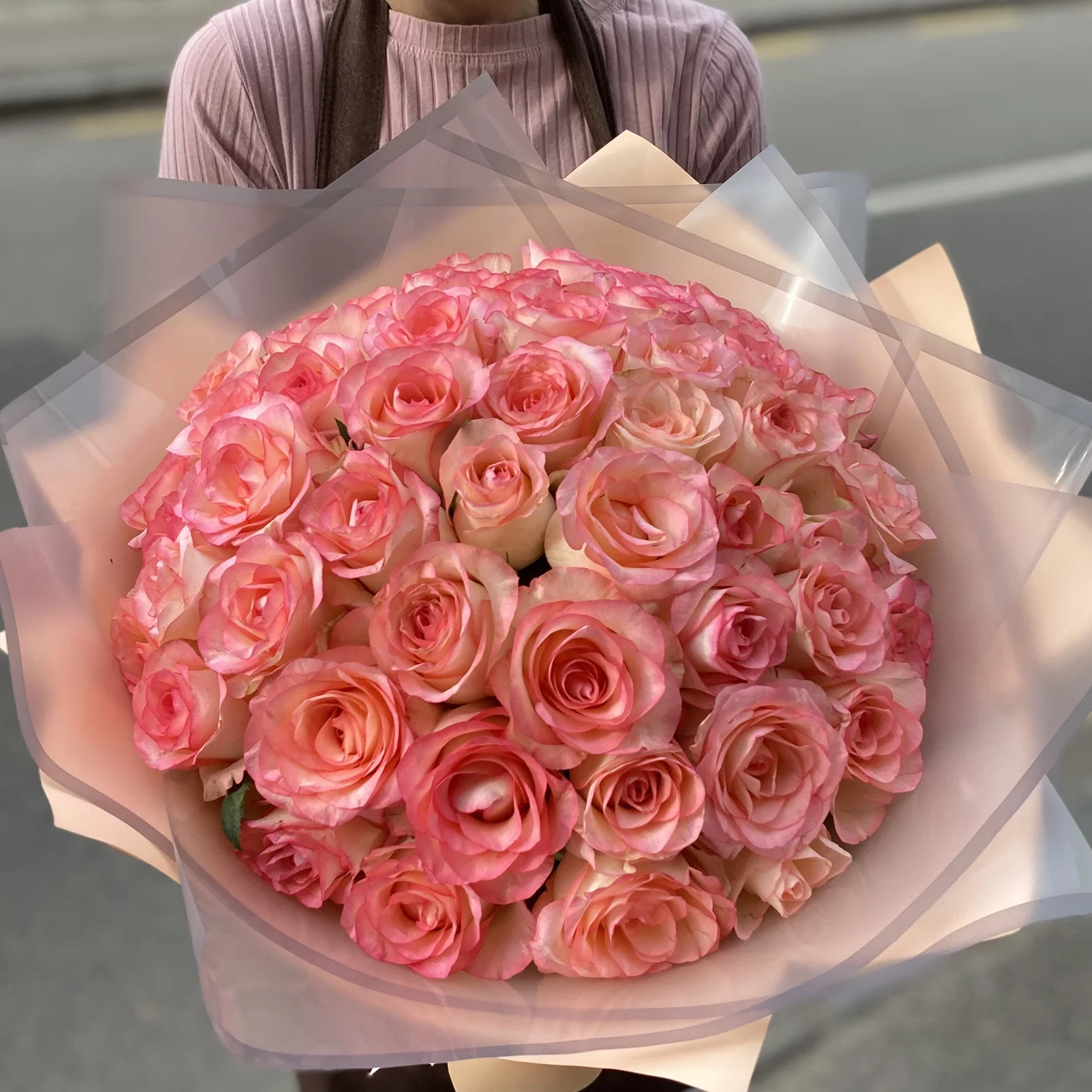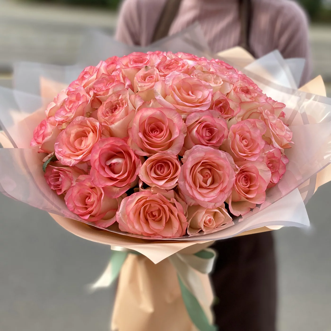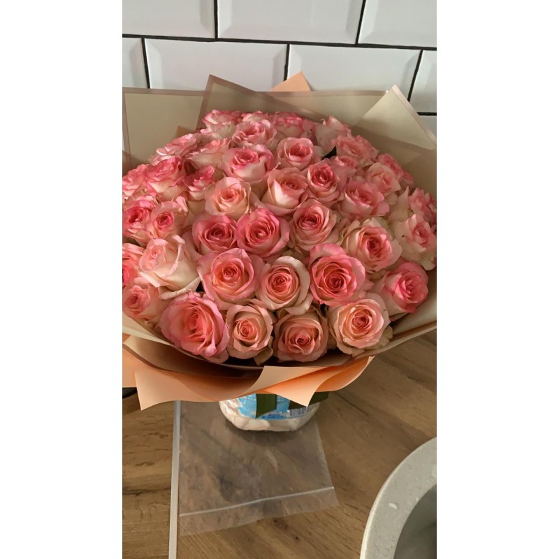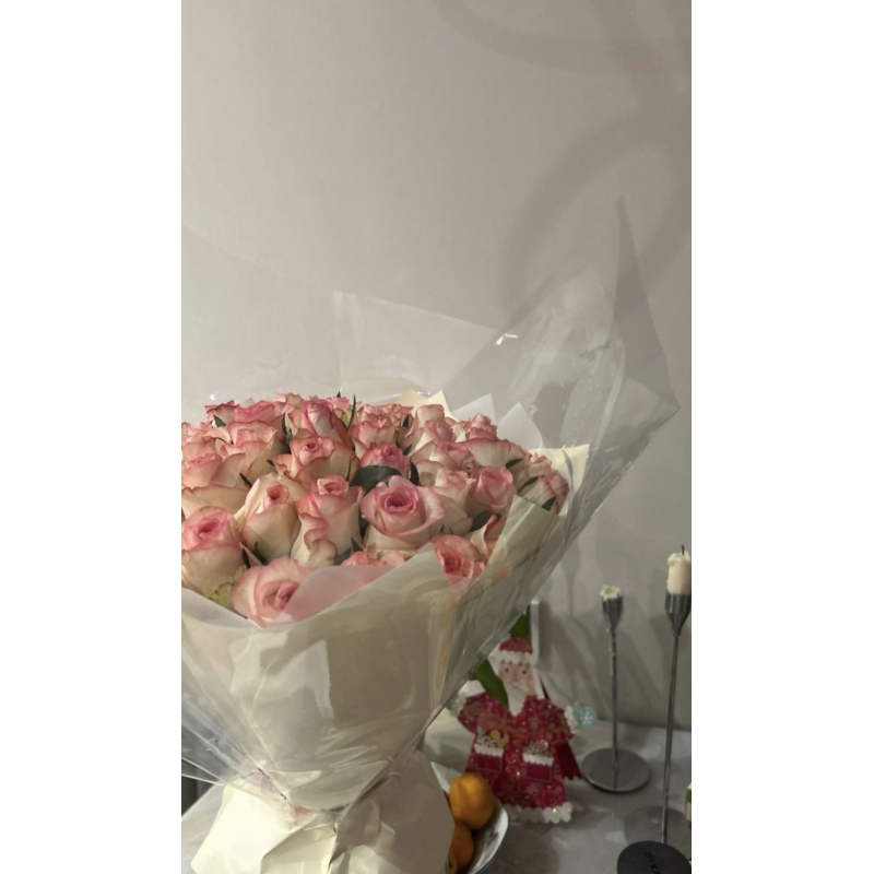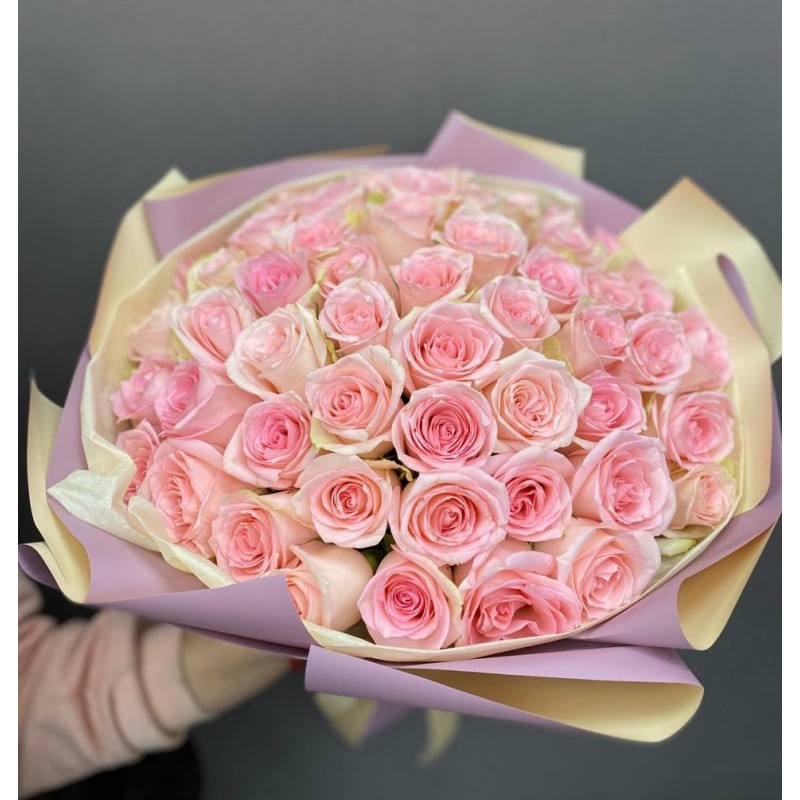 Нежнейший букет из нежно-розовых роз с неповторимым тонким ароматом никого не оставит равнодушным. Преподнесите это нежное облако из роз своим близким и наполните их день волшебством, нежностью и заботой. Букет идеально подойдет для первого свидания, расскажет о Вашей симпатии, а так же его уместно преподнести молодоженам, подруге, коллеге и членам семьи.