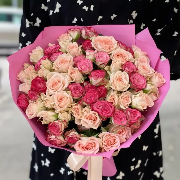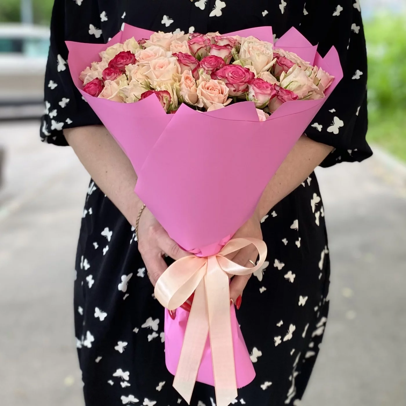 Букет из кремовой и малиновой кустовой розы прекрасно подойдет ко дню рождения или свиданию. Милый и стильный букет порадует получателя своей свежестью и стойкостью. Нежные карамельные цвета создают неповторимую ауру девичего обаяния. Кустовая роза — такая естественная, живая, яркая и вместе с тем разнообразная в своих очаровательных оттенках розового, красного, кремового и малинового. Этот букет расскажет об истинных чувствах дарителя, его восхищении и любви!
