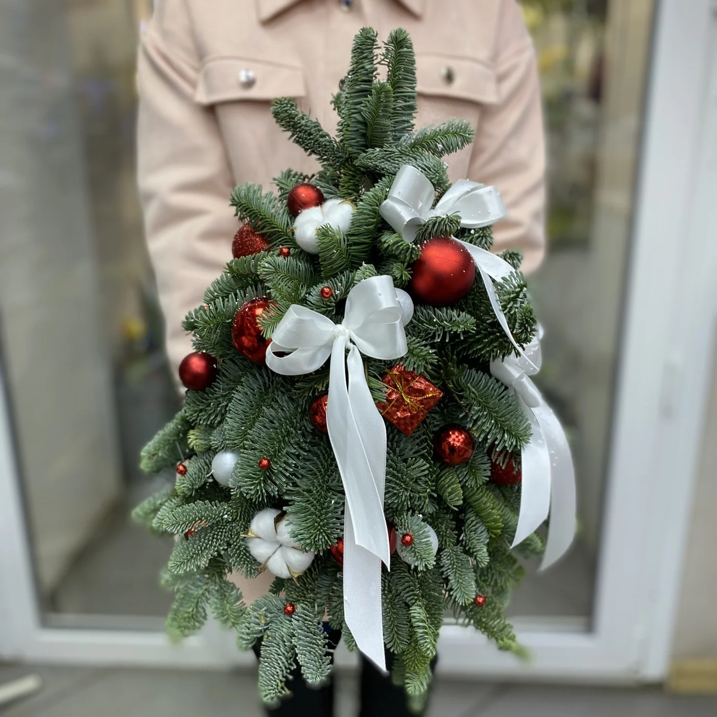 Состав букета: нобилис, елочные игрушки.