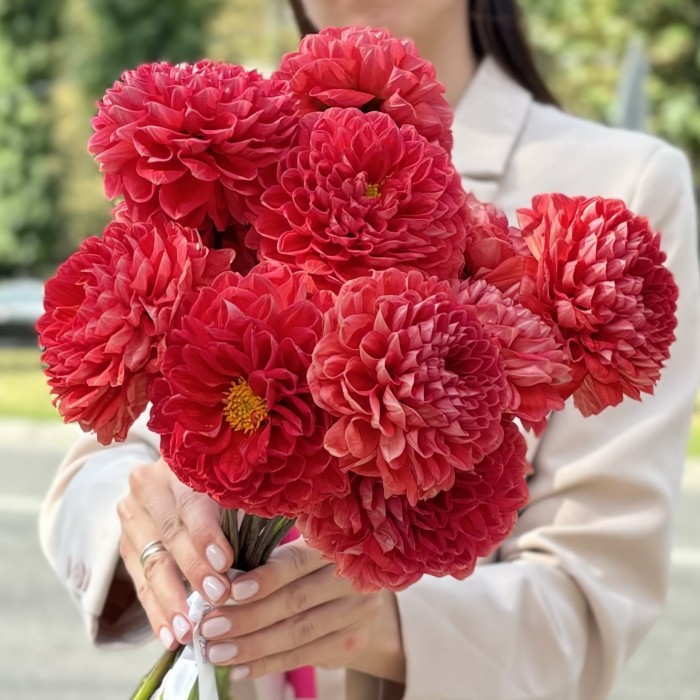 Яркий букет георгин оранжевый помпон отличный вариант подарка на День рождения, юбилей и 1 сентября.