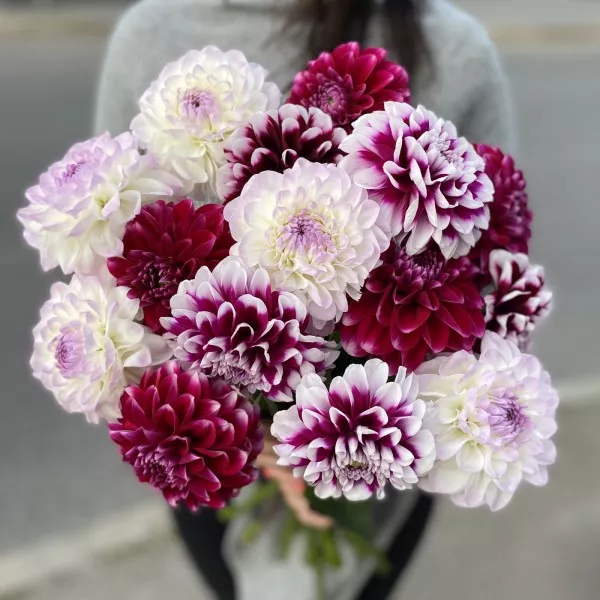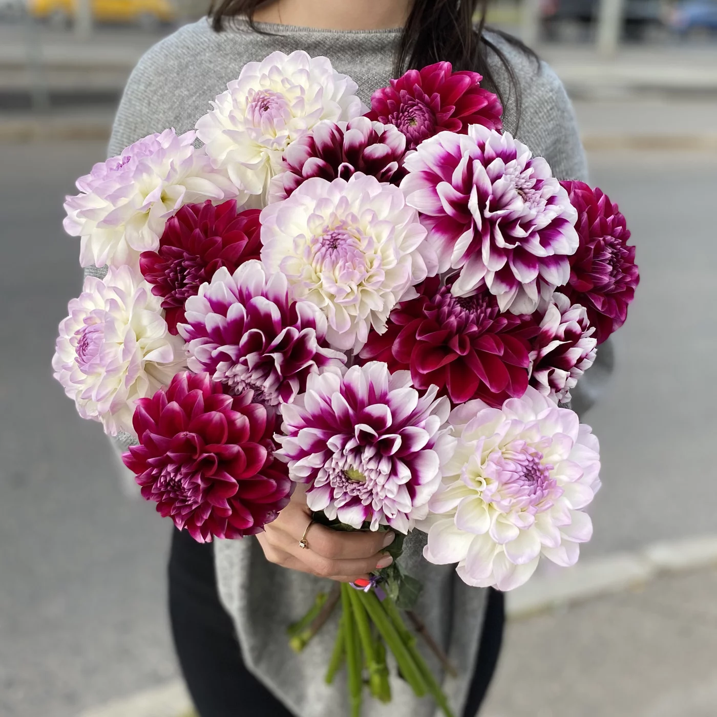 Георгина нежных и ярких оттенков прекрасно смотрится в монобукете, как в упаковке, так и без.