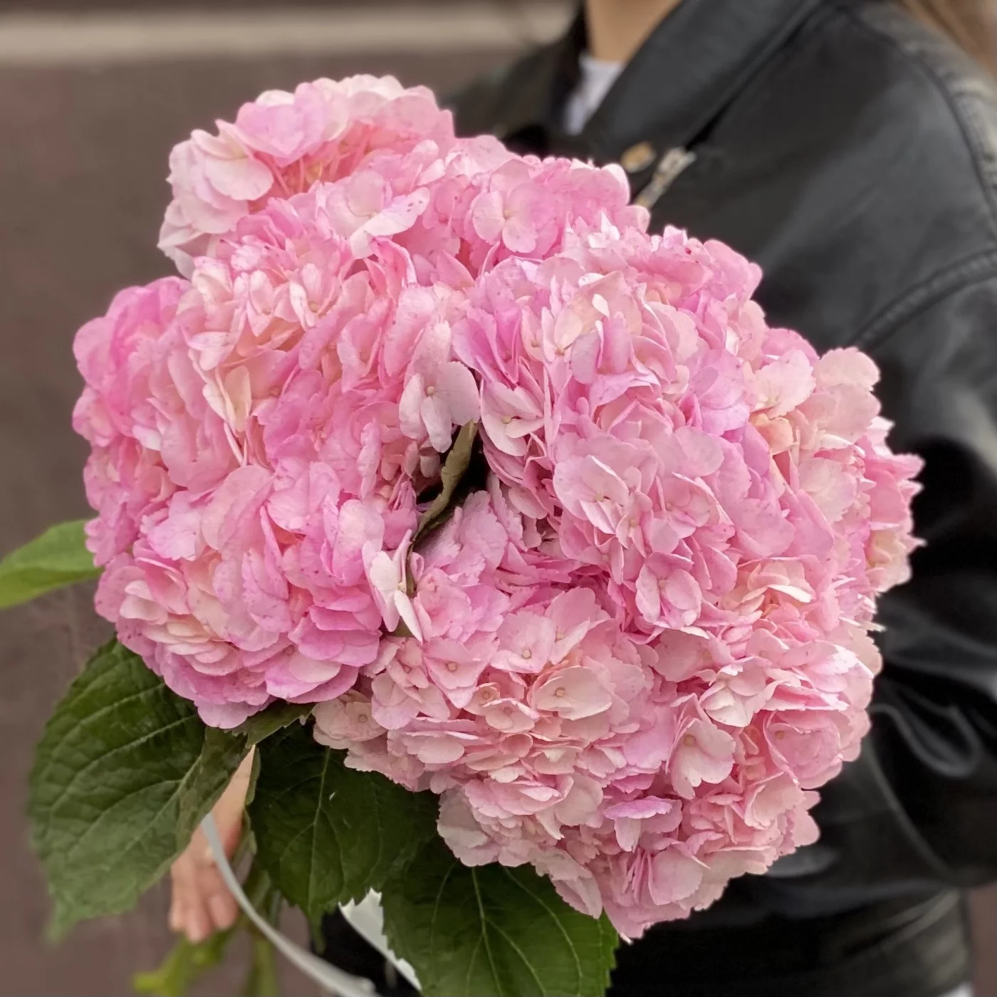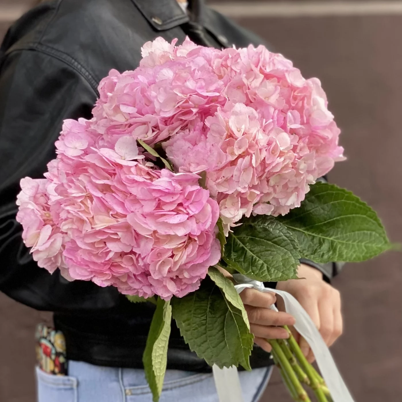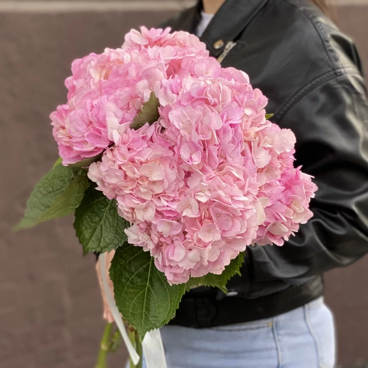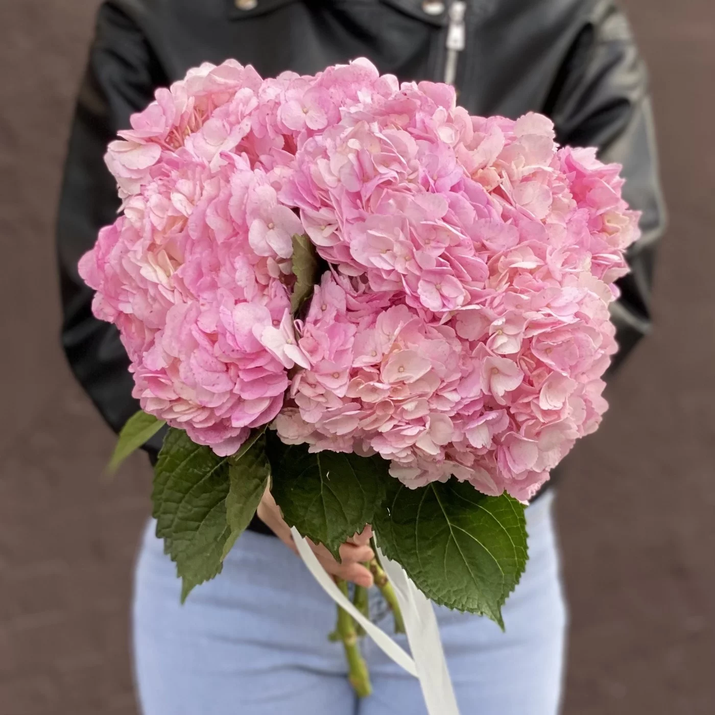 Букет из пышных розовых гортензий порадует свою получательницу и подарит ей хорошее настроение на весь день!