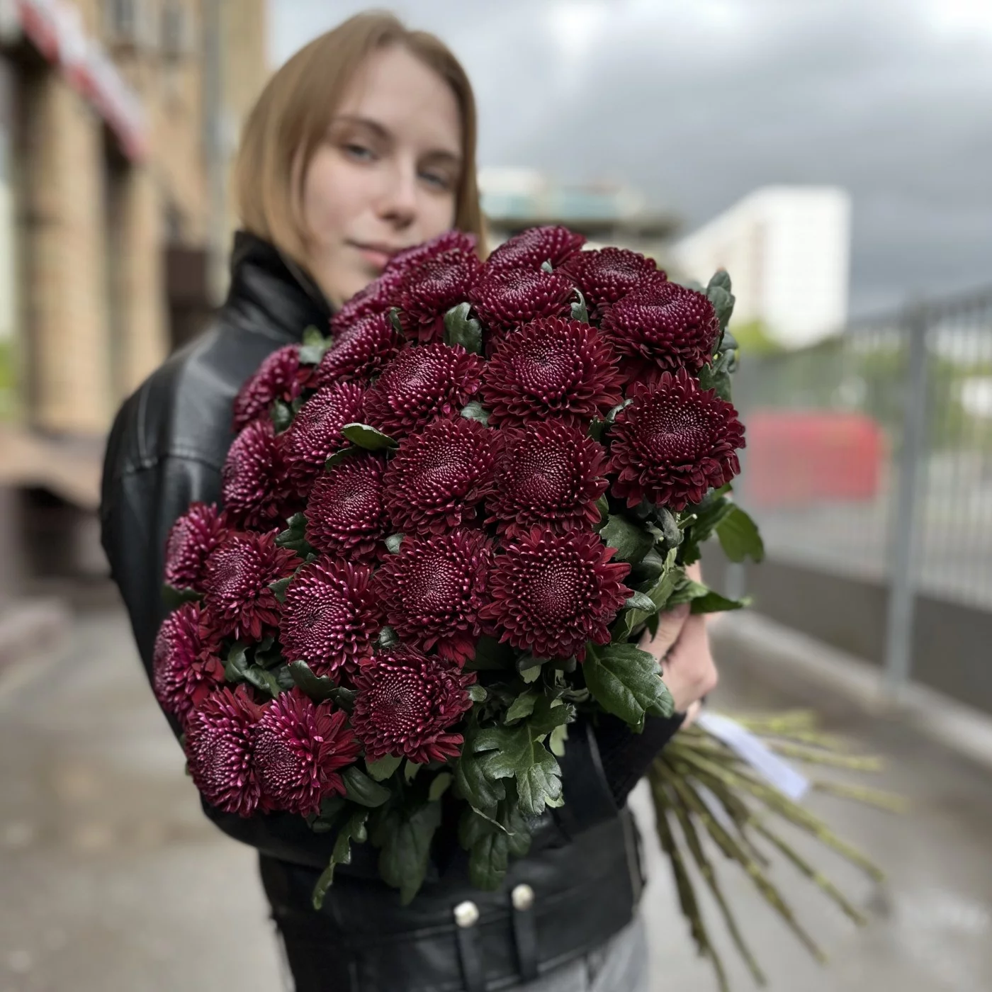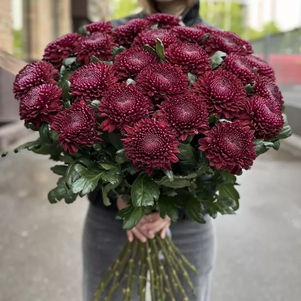 Хризантема бордово-фиолетовая Покер — настоящее украшение любой композиции. Ее насыщенные, глубокие оттенки создают ощущение благородства и таинственности, а аккуратная форма лепестков подчеркивает элегантность цветка.