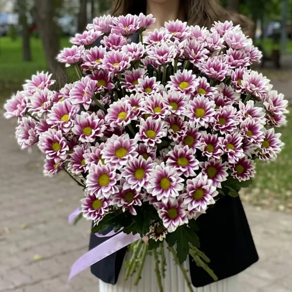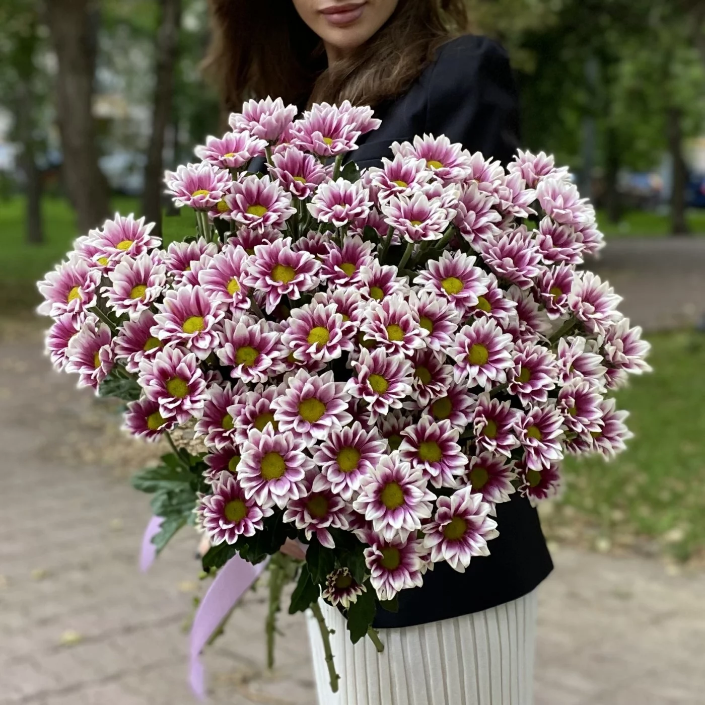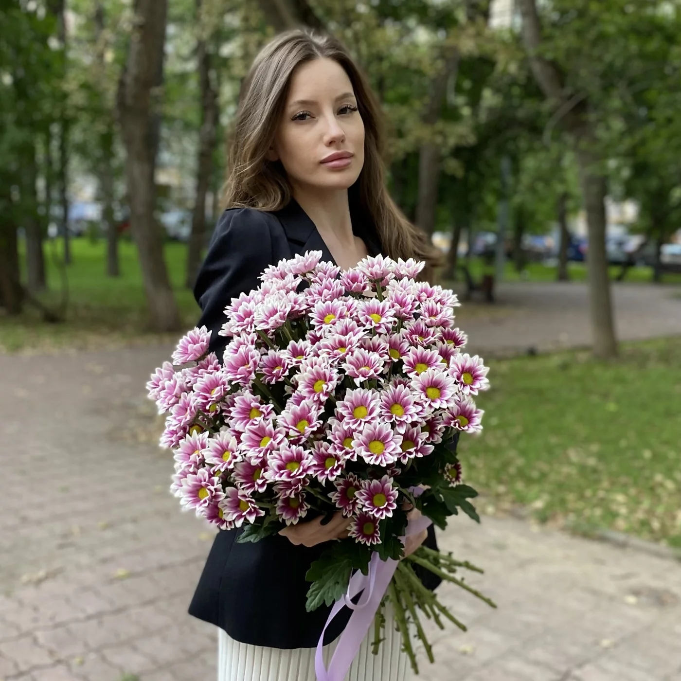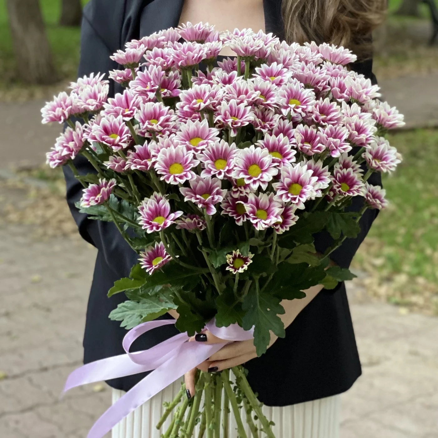 Кустовая хризантема сорта Хайдар пинк бело-сиреневого цвета — это отличный вариант подарка девушке или женщине по любому поводу. Доставка букетов круглосуточно по Москве и Подмосковью.