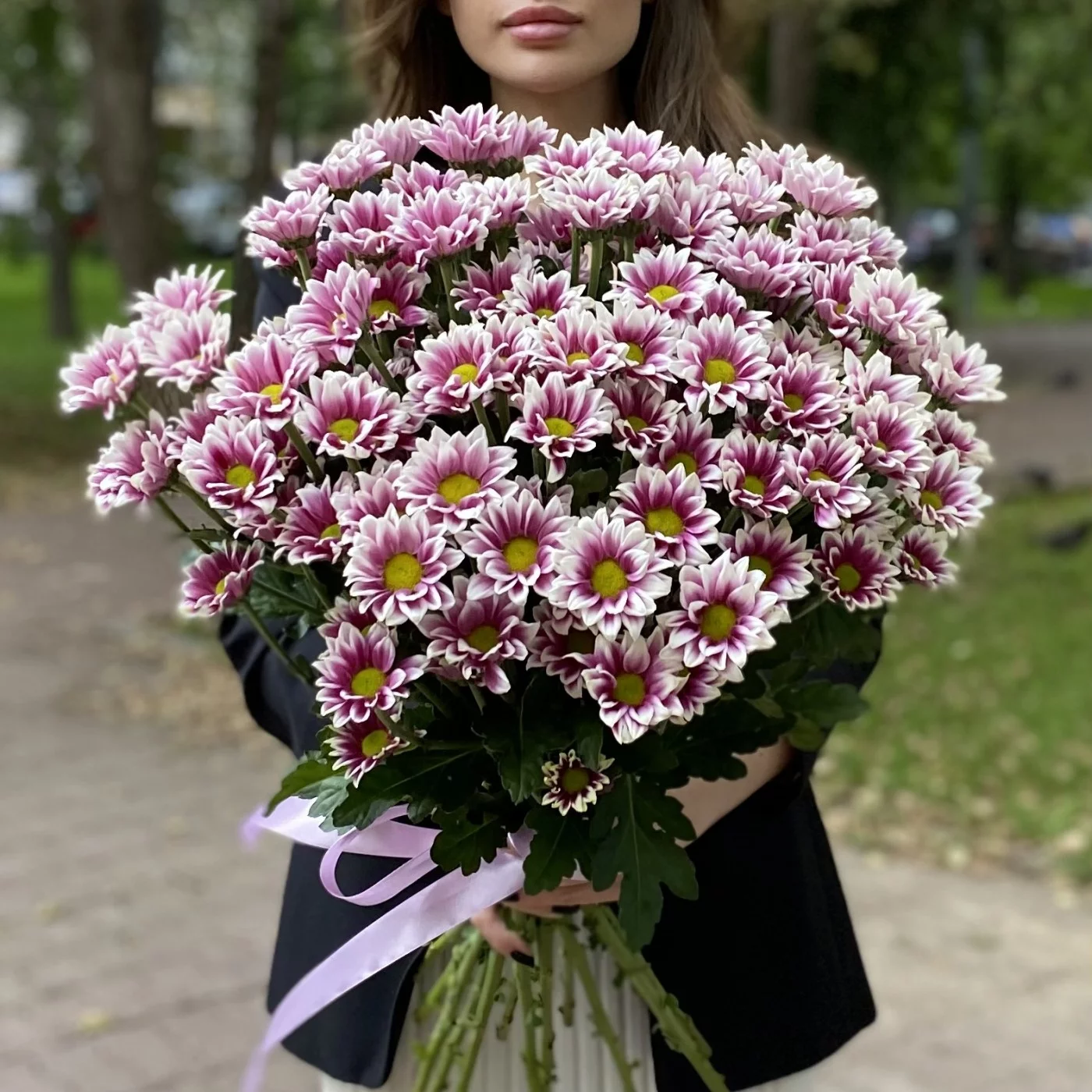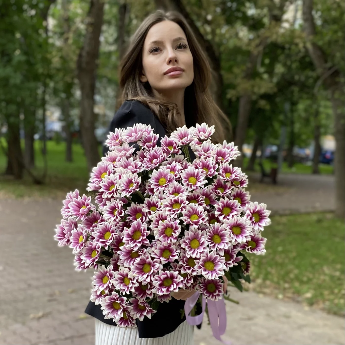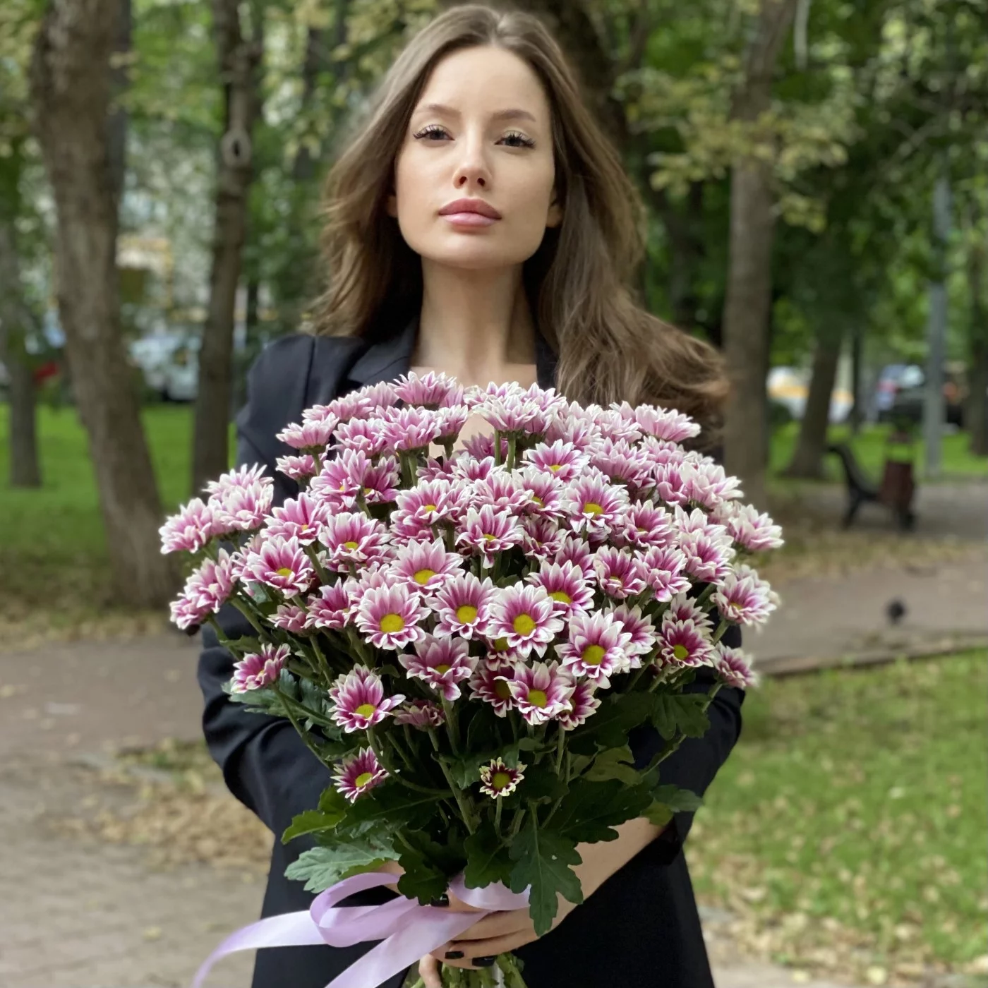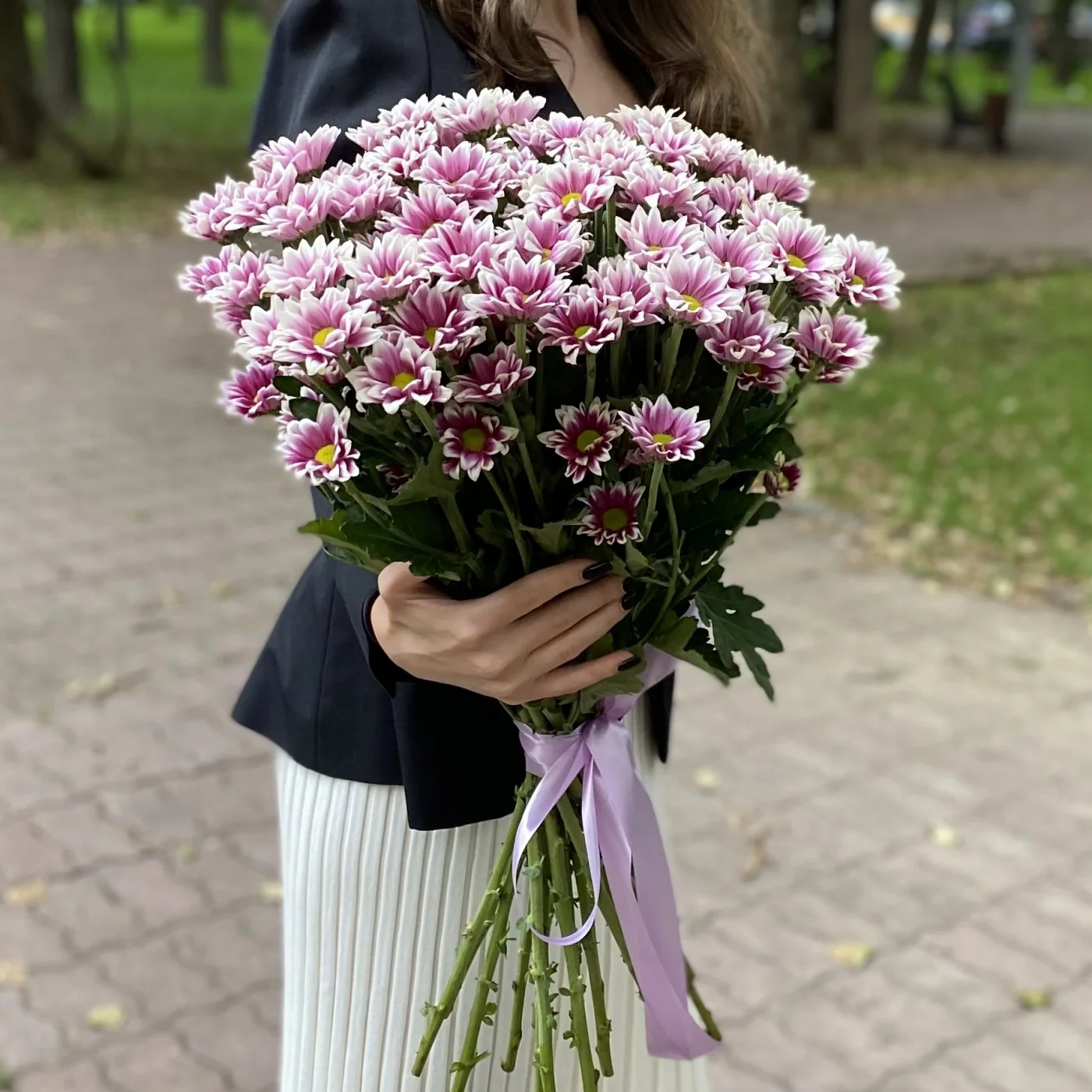 Кустовая хризантема сорта Хайдар пинк бело-сиреневого цвета — это отличный вариант подарка девушке или женщине по любому поводу. Доставка букетов круглосуточно по Москве и Подмосковью.