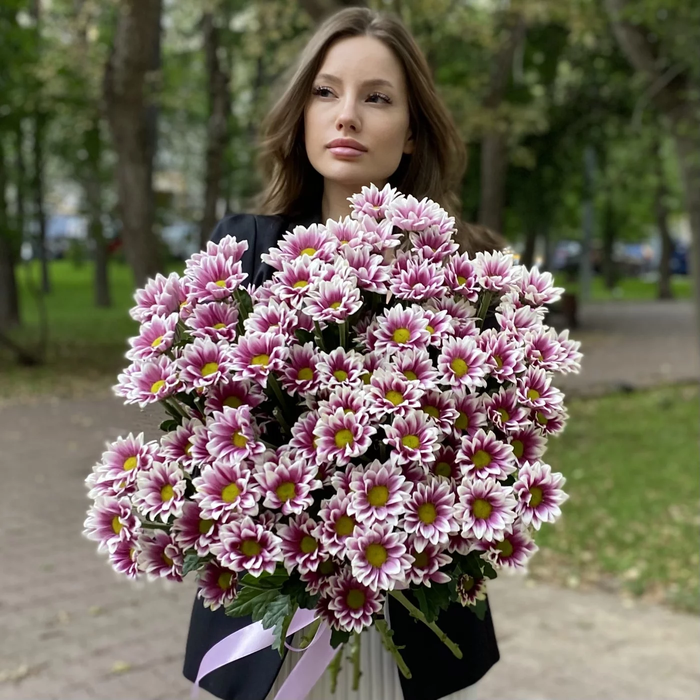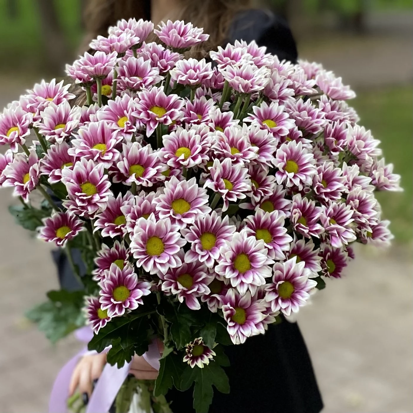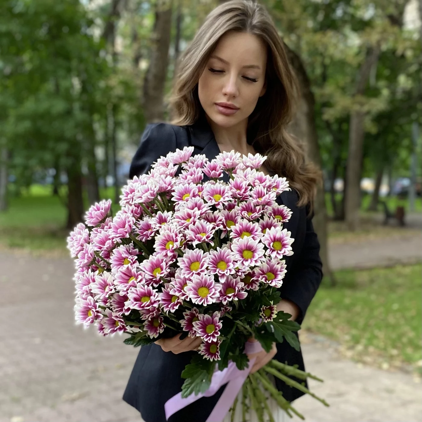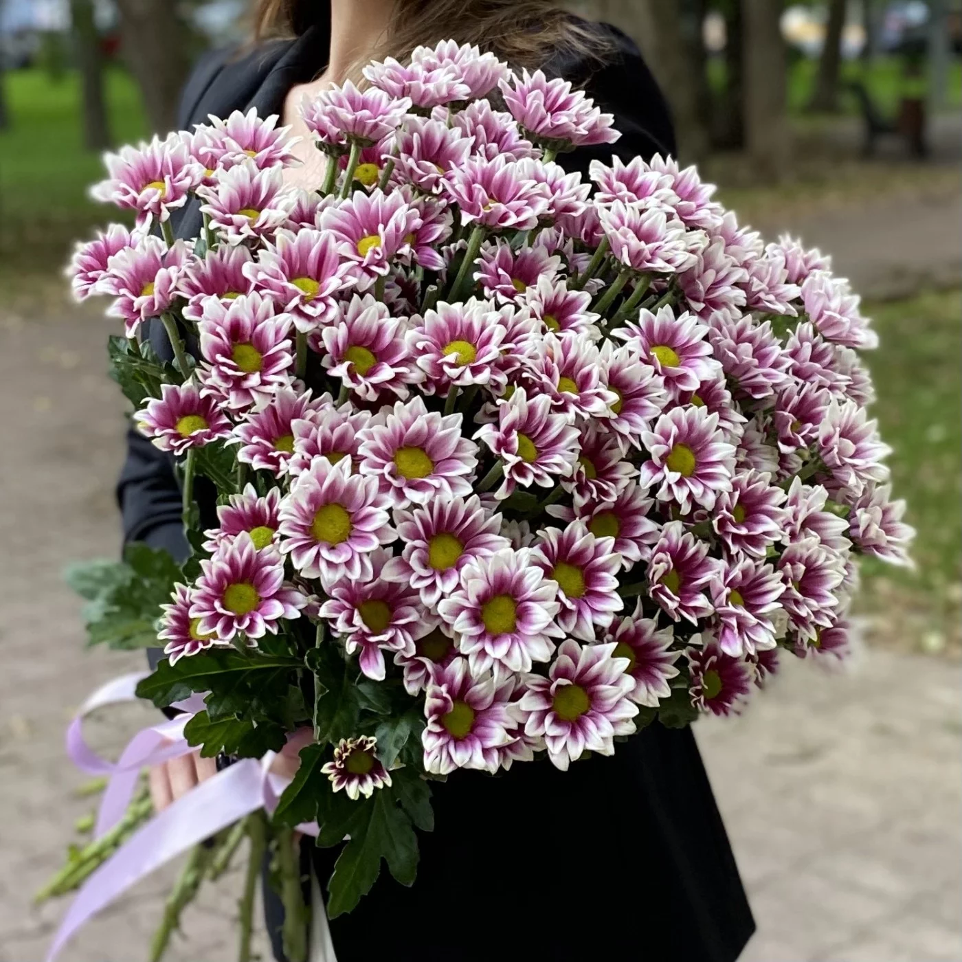 Кустовая хризантема сорта Хайдар пинк бело-сиреневого цвета — это отличный вариант подарка девушке или женщине по любому поводу. Доставка букетов круглосуточно по Москве и Подмосковью.