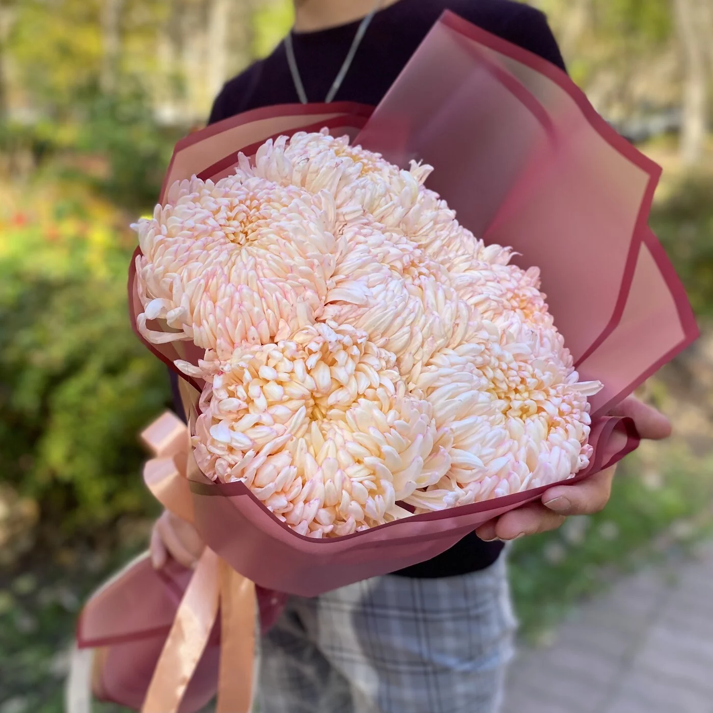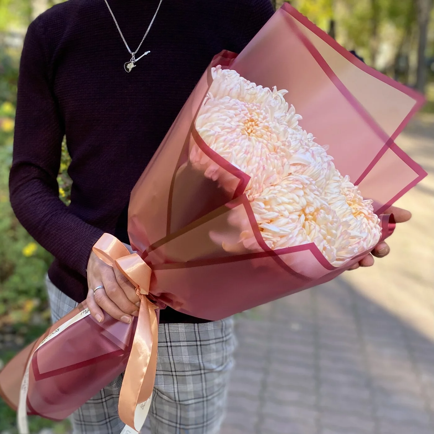Состав как на фото: хризантема – 7 штук, упаковка.