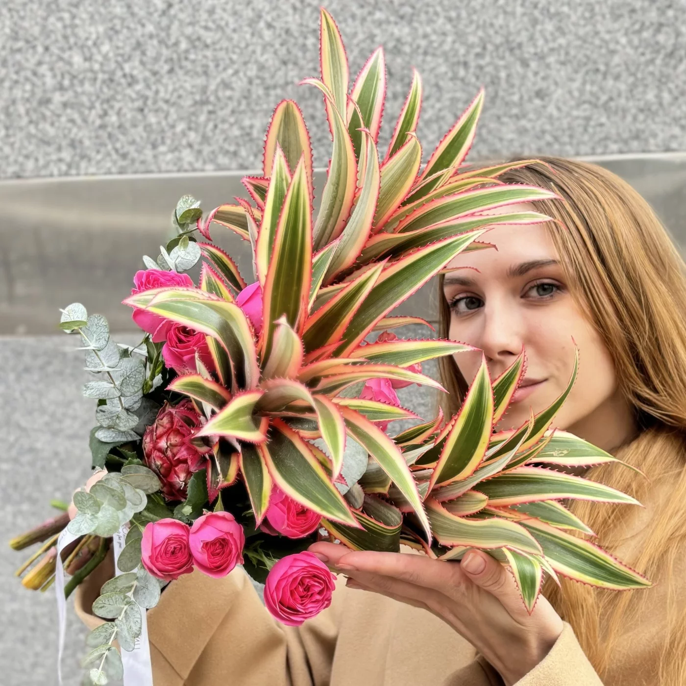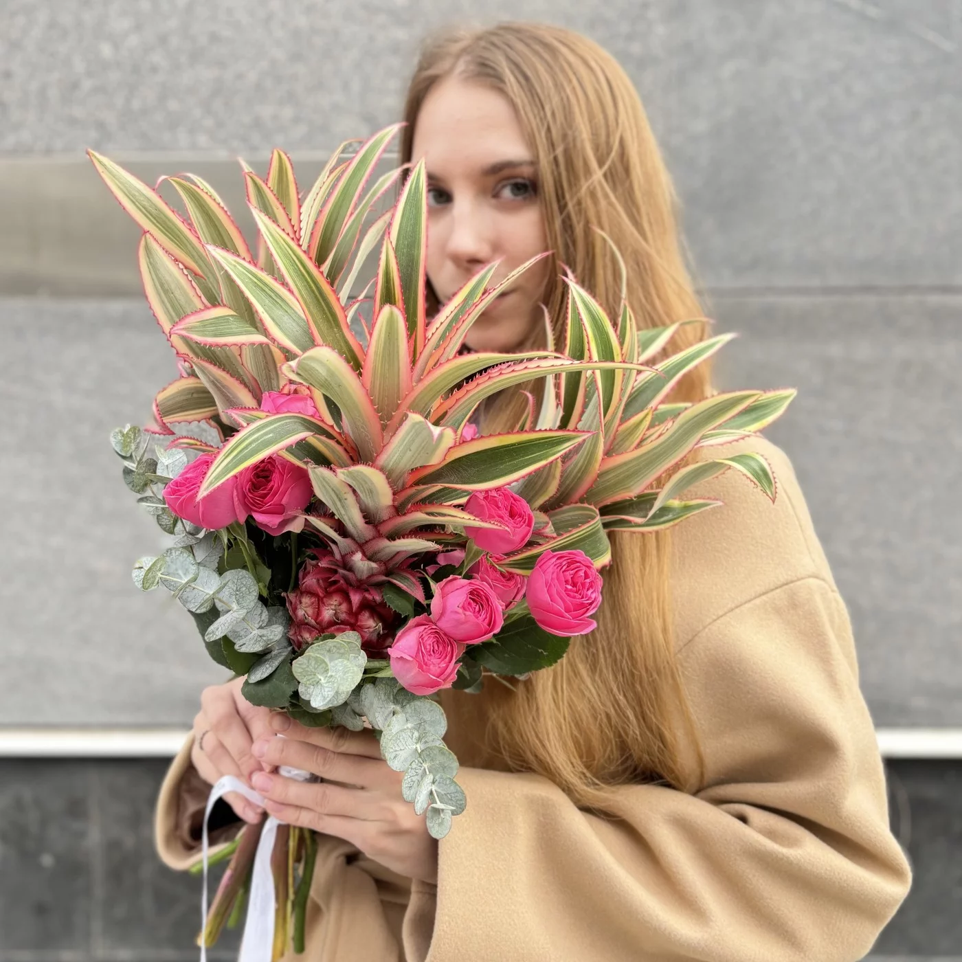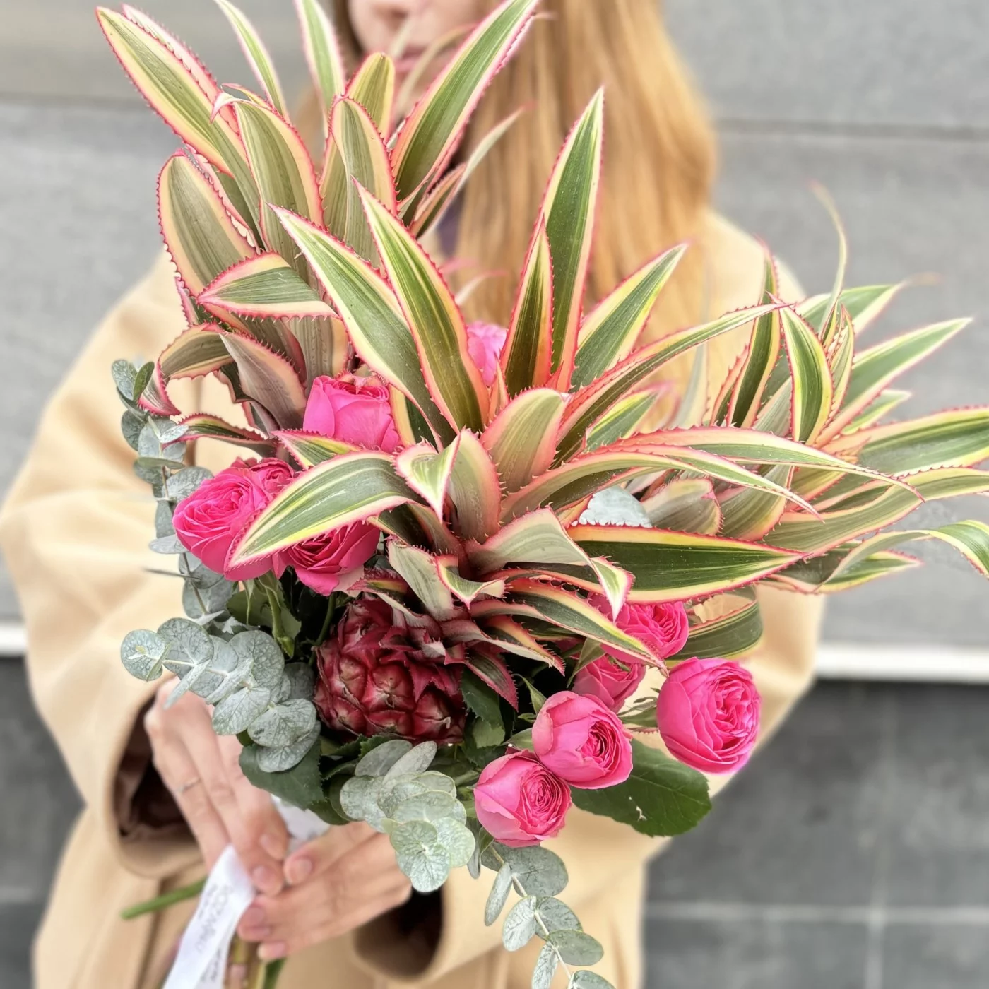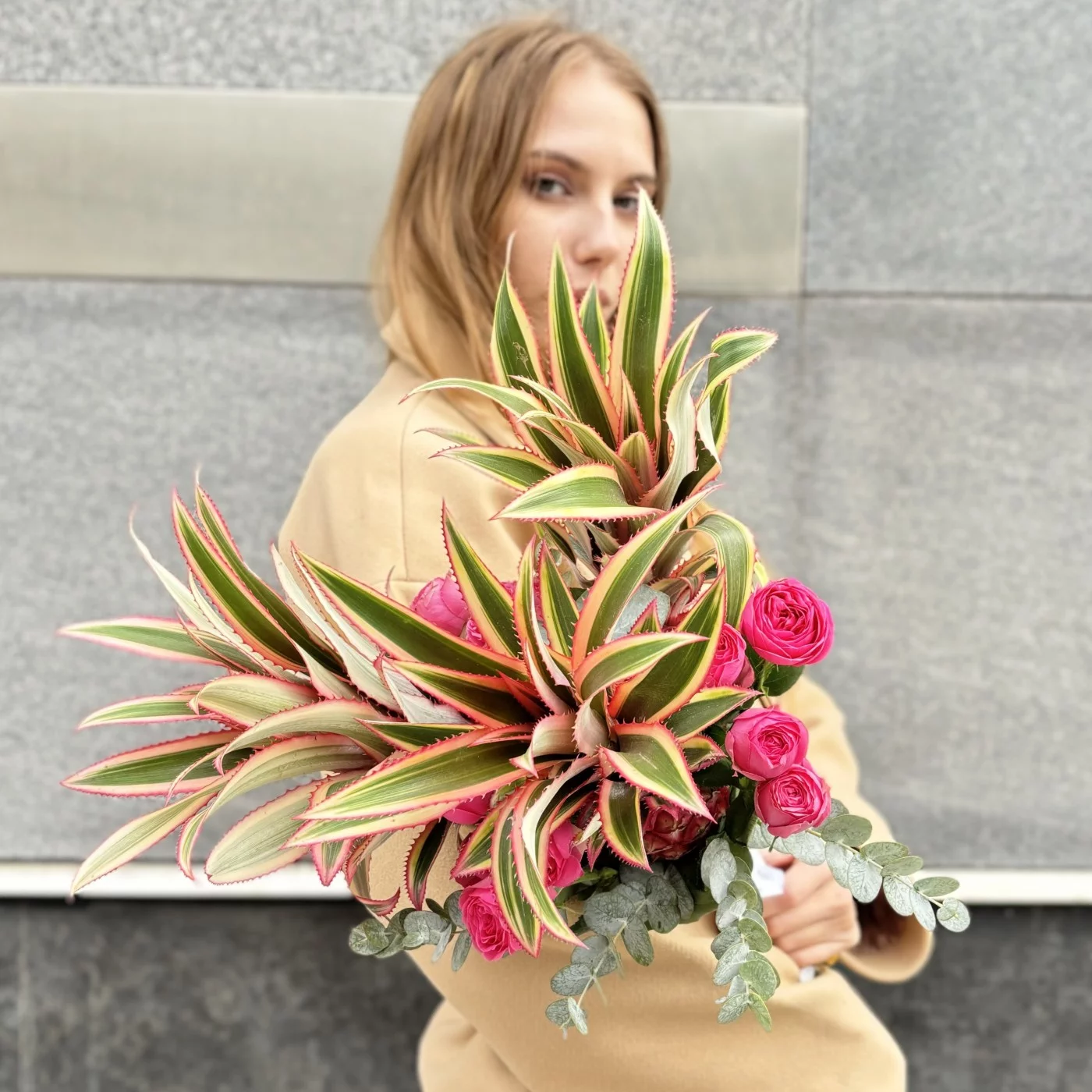 Интерьерный букет Яркие тропики — это воплощение элегантности и стиля.