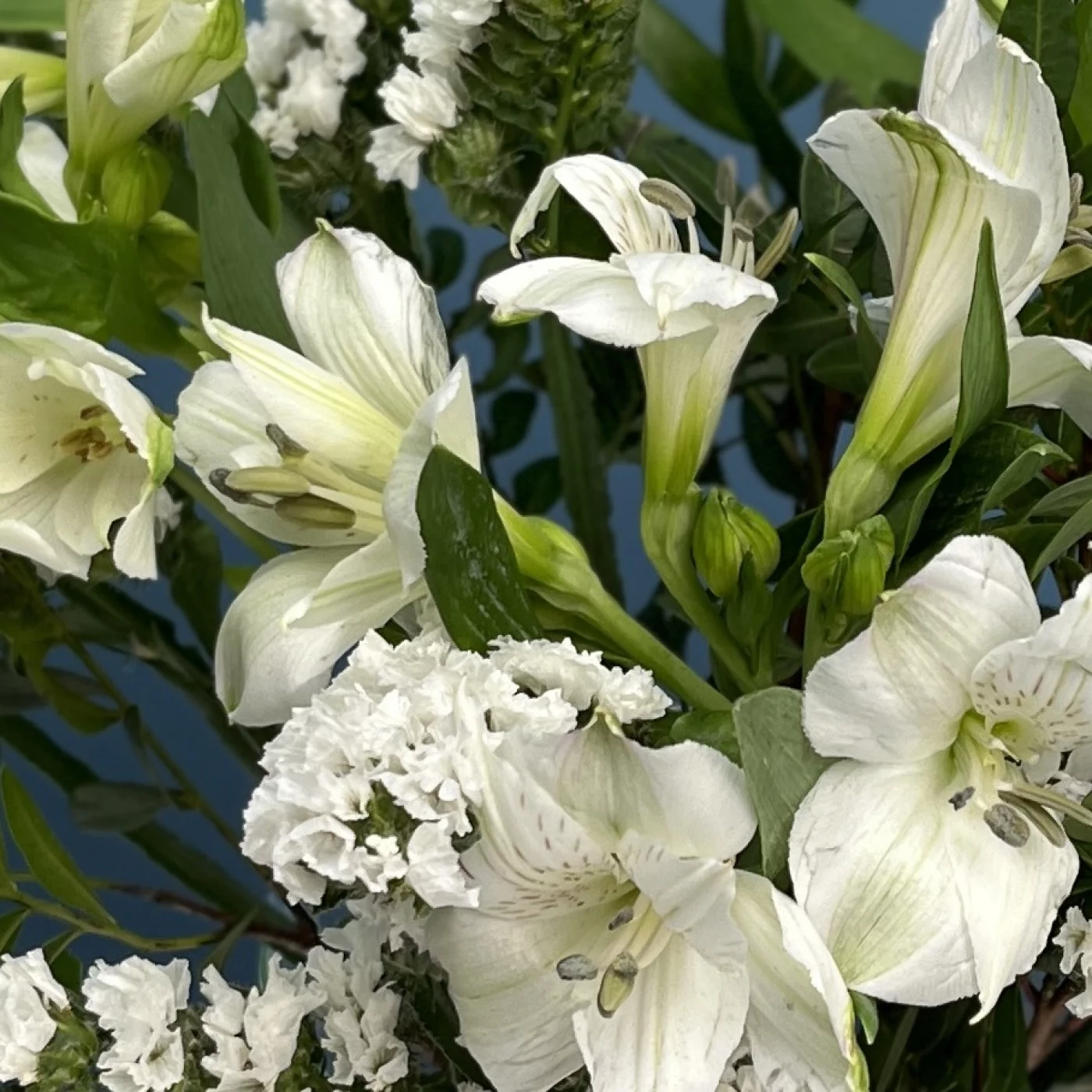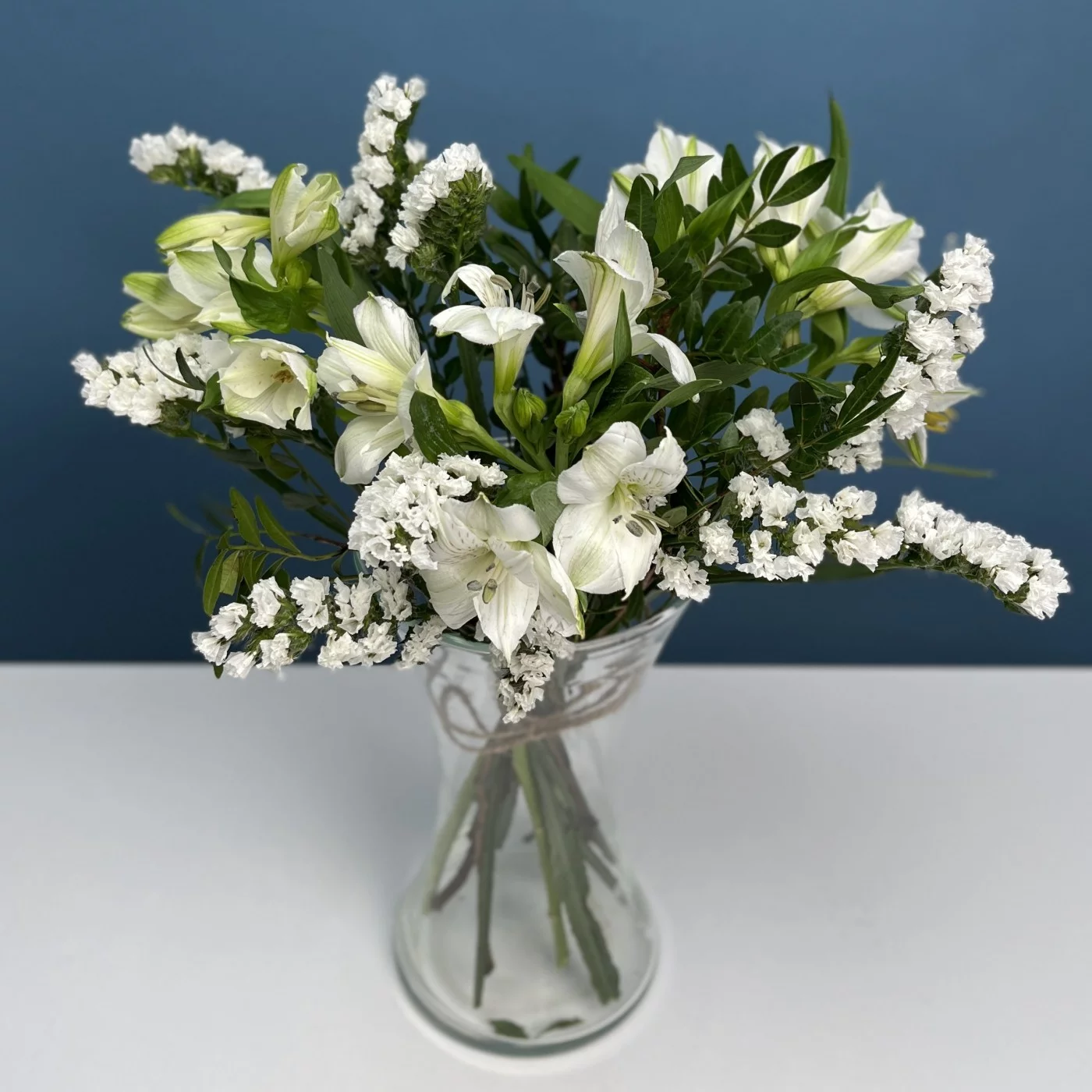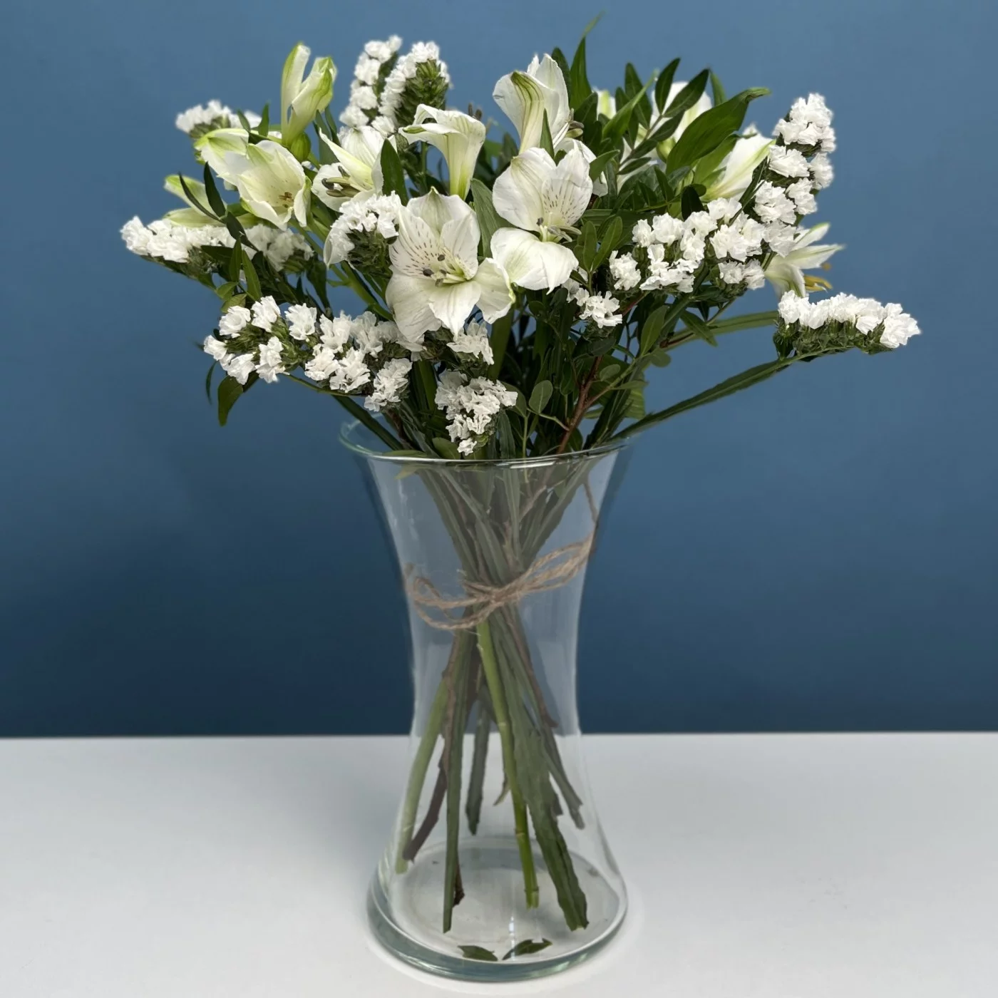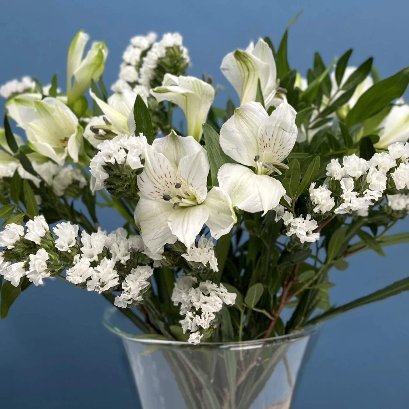 Нежный букет с альстромерией и статицей создаст атмосферу уюта и радости в вашем интерьере.