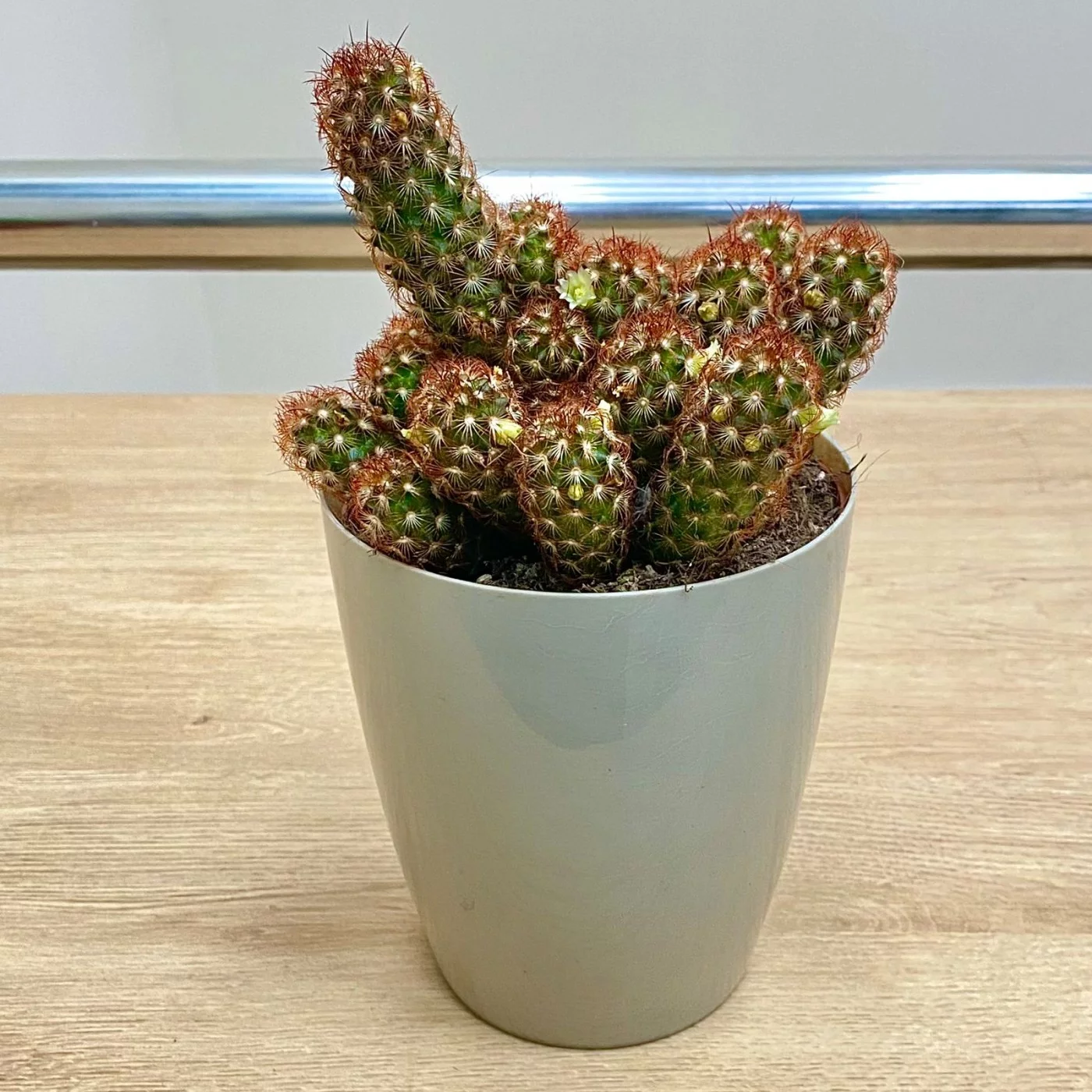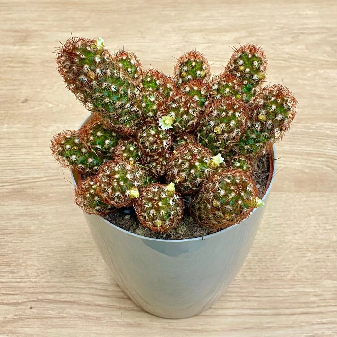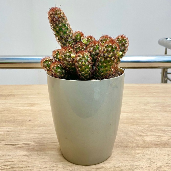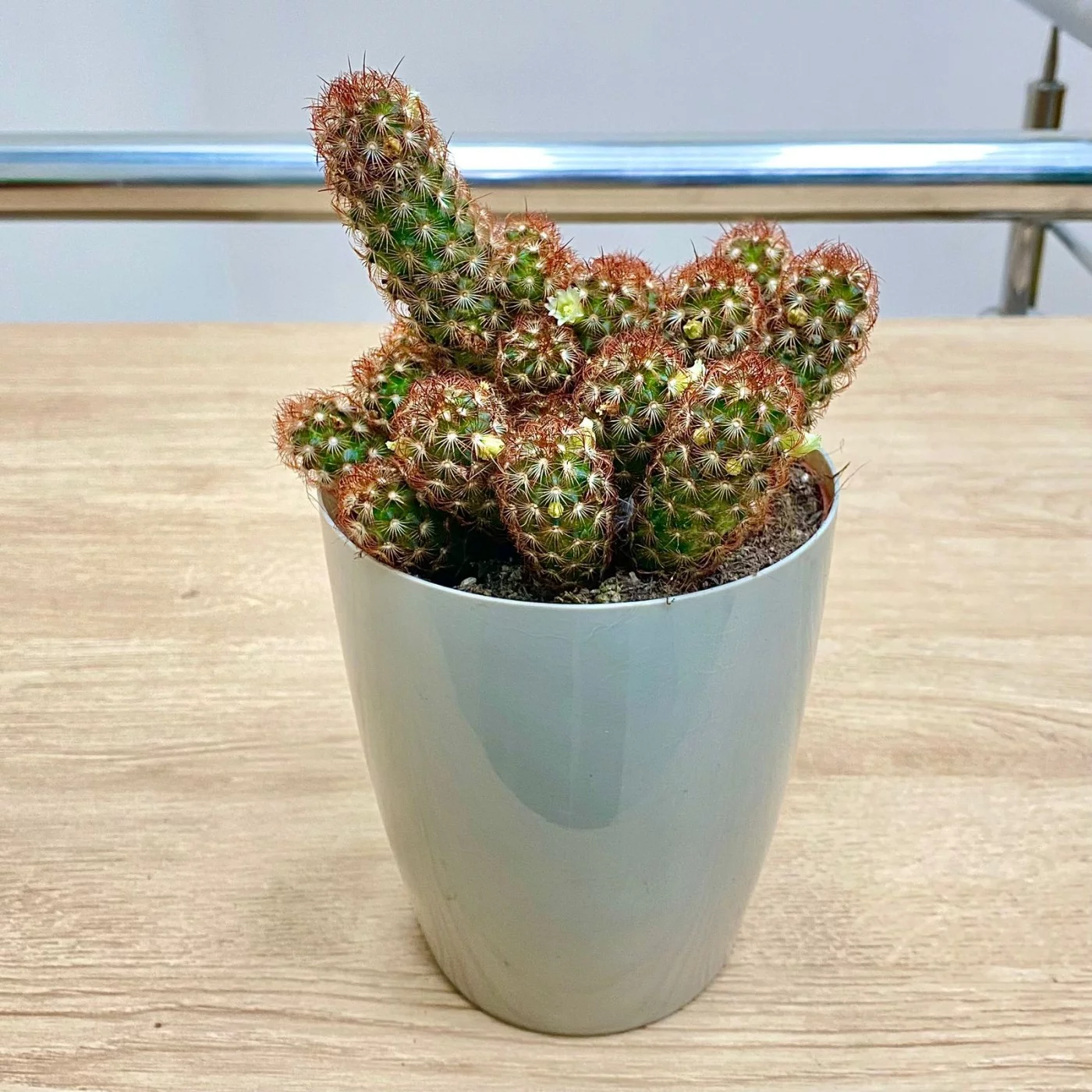 Кактус Маммиллярия Элонгата - прямостоящий, быстрорастущий, очень эффектный кактус. Большую декоративность придают распушенные красно - коричневые колючки. Цветет этот кактус нежно - розовыми или нежно- желтыми цветами. Растение идеально подходит для домашнего разведения, флорариумов и офисных помещений.