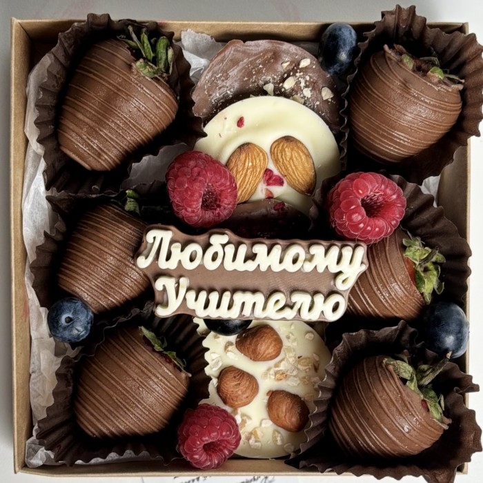 Клубника с шоколадом и ягодами для учителя