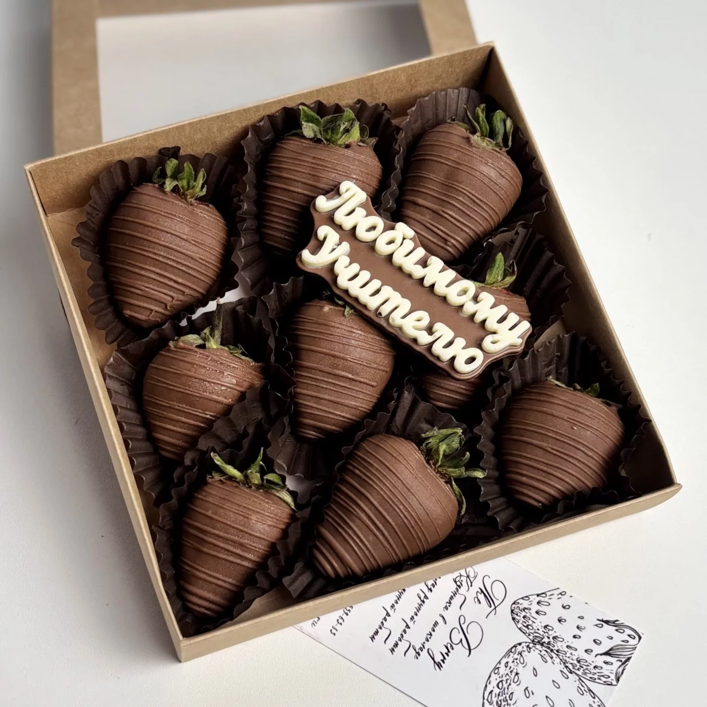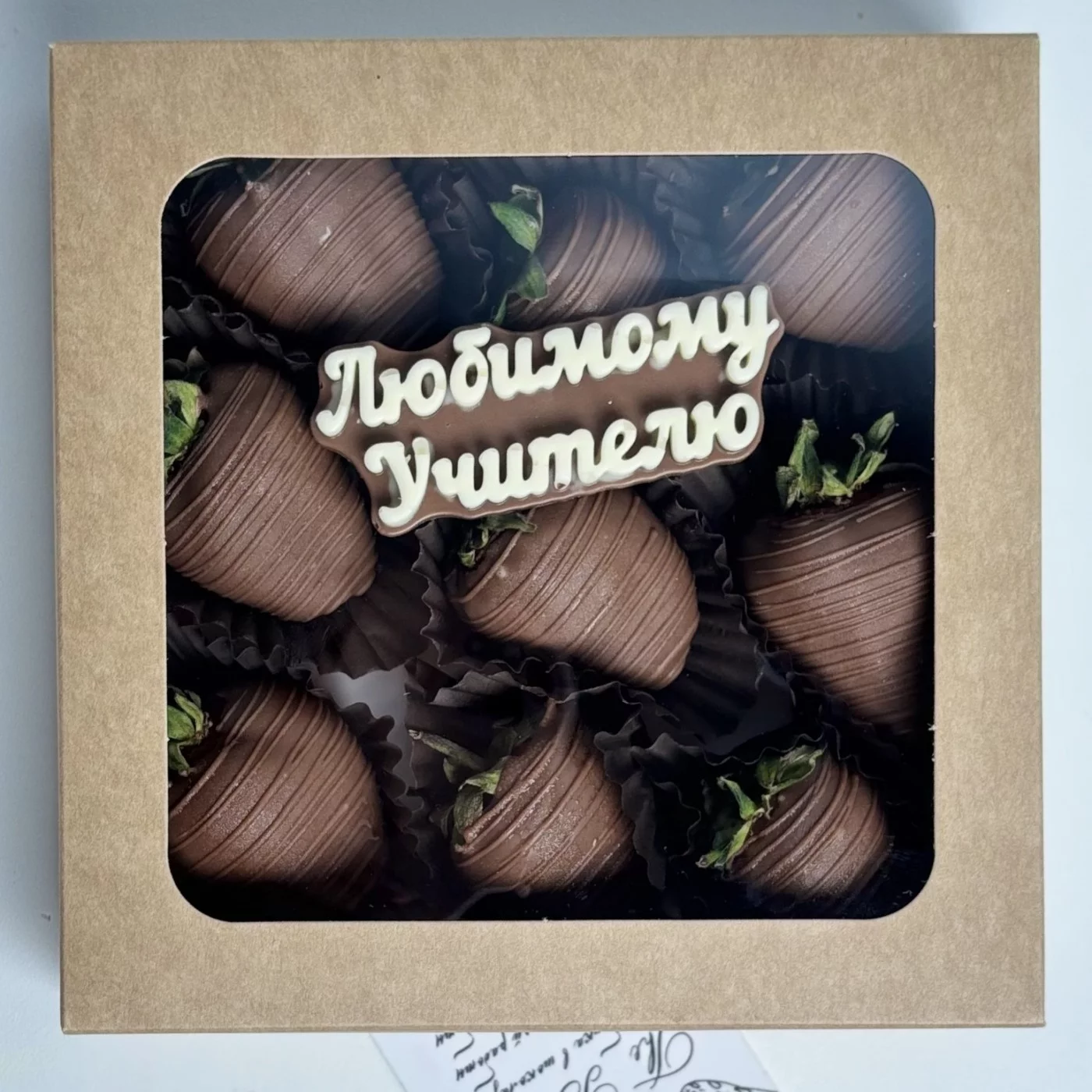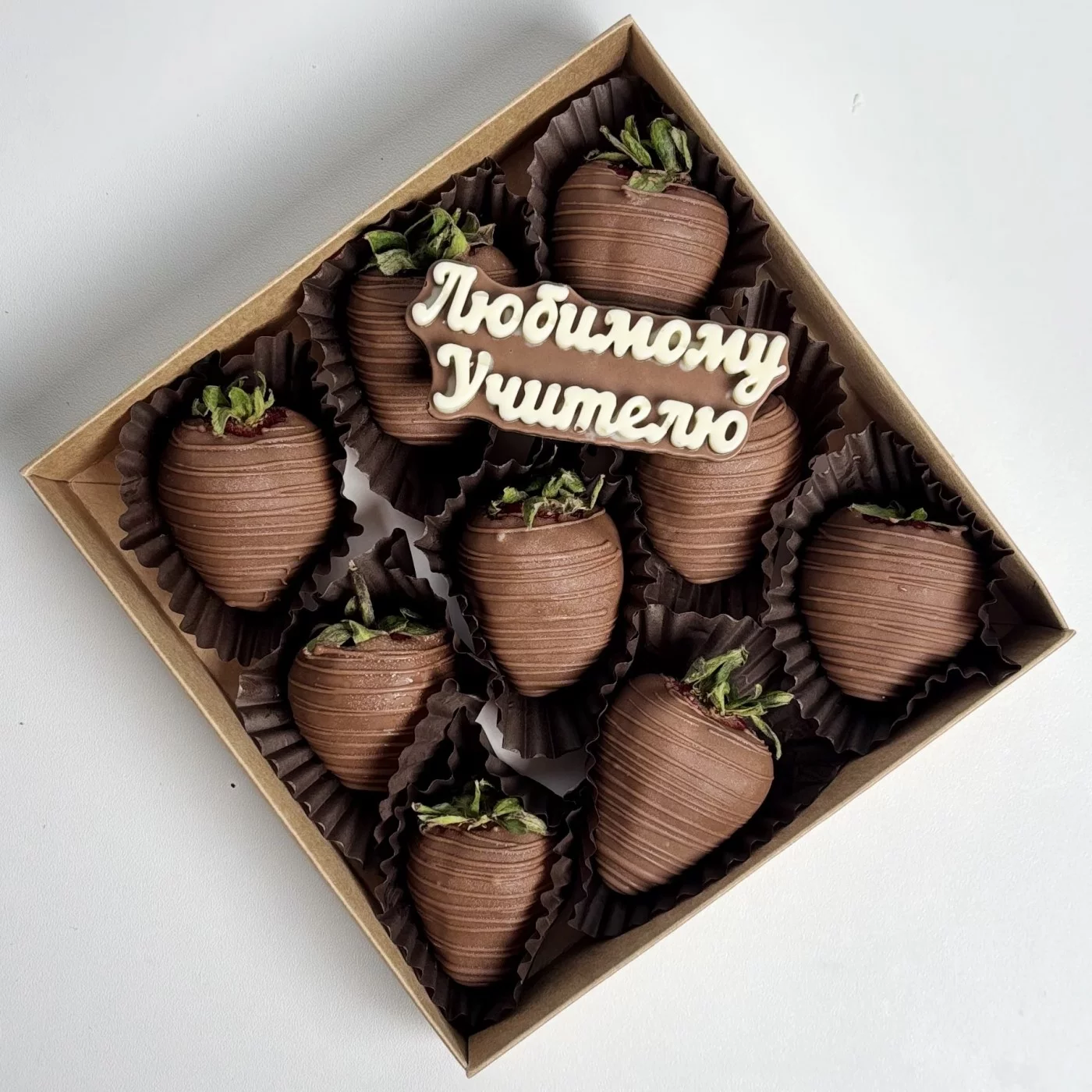 Клубника в молочном бельгийском шоколаде с топпереом для любимого учителя. Приятный подарок на 1 сентября или день учителя.