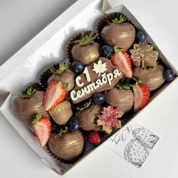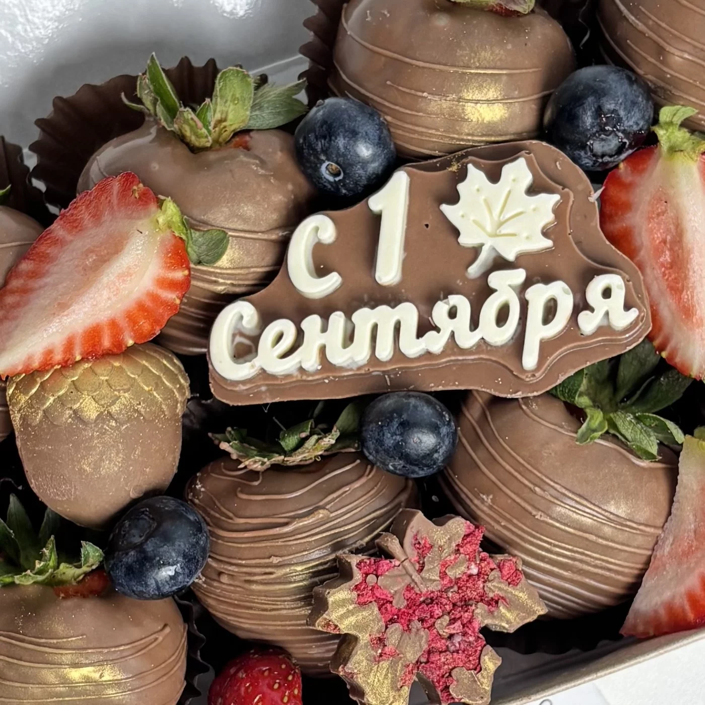 Клубника в шоколаде классика на 1 сентября. Прекрасное дополнение к букету из гладиолусов.