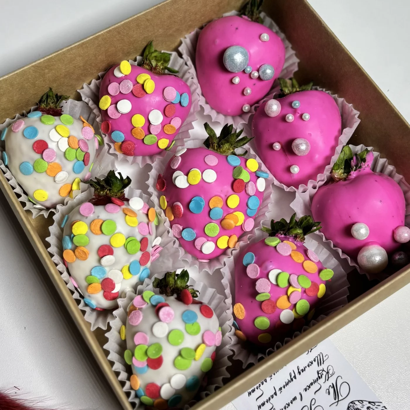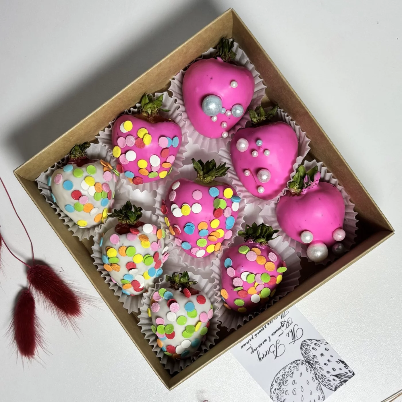 Яркий и праздничный набор из клубники в шоколаде для любого праздника.