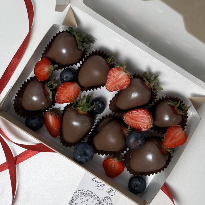 Клубника в шоколаде средняя Классика с ягодами, станет вкусным и красивым дополнением к букету ароматных пионов или 101 нежной розе.