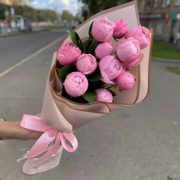 Комплимент из пионовидных роз Сильва Пинк 50см