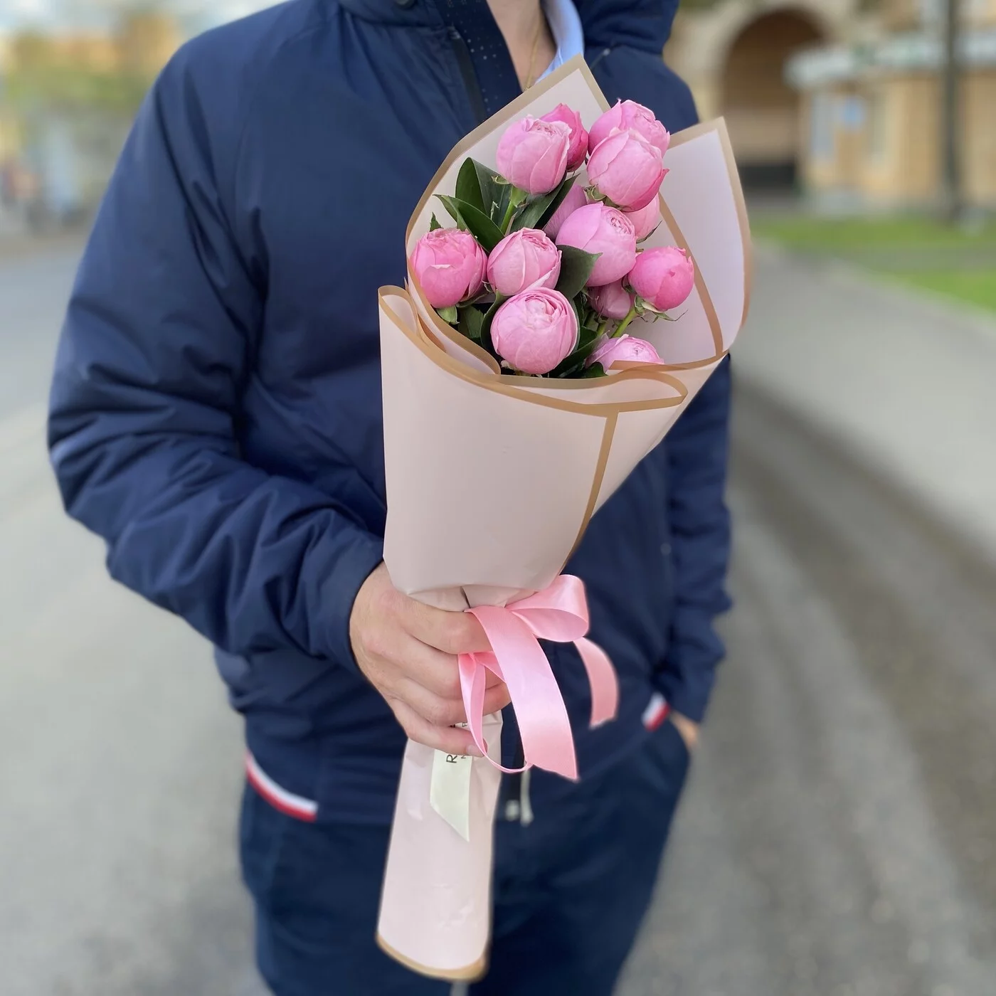 Небольшой букет из кустовых пионовидных роз сорта Сильва Пинк с зеленью в упаковке. Эта роза является хитом наших продаж, она очень нежная и имеет красивый бутон. Замечательный вариант для комплимента женщине, подруге, коллеге и учителю.