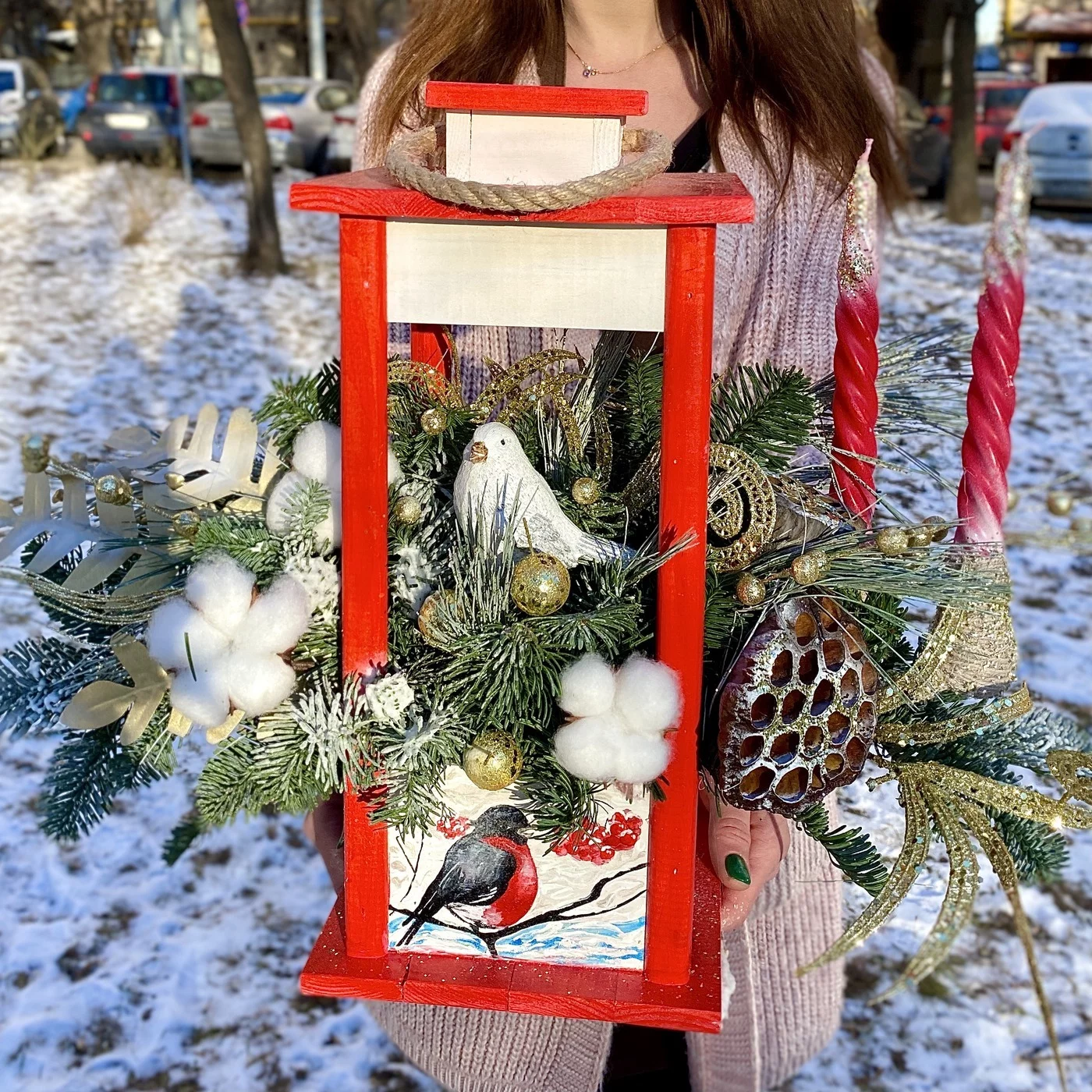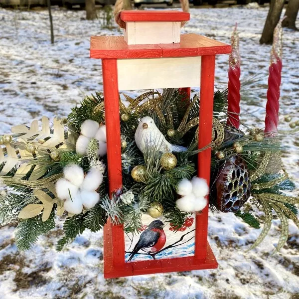 Авторская композиция со свечами в фонаре, расписанным вручную, станет эксклюзивным подарком и подметит Ваше особенное отношение к получател.