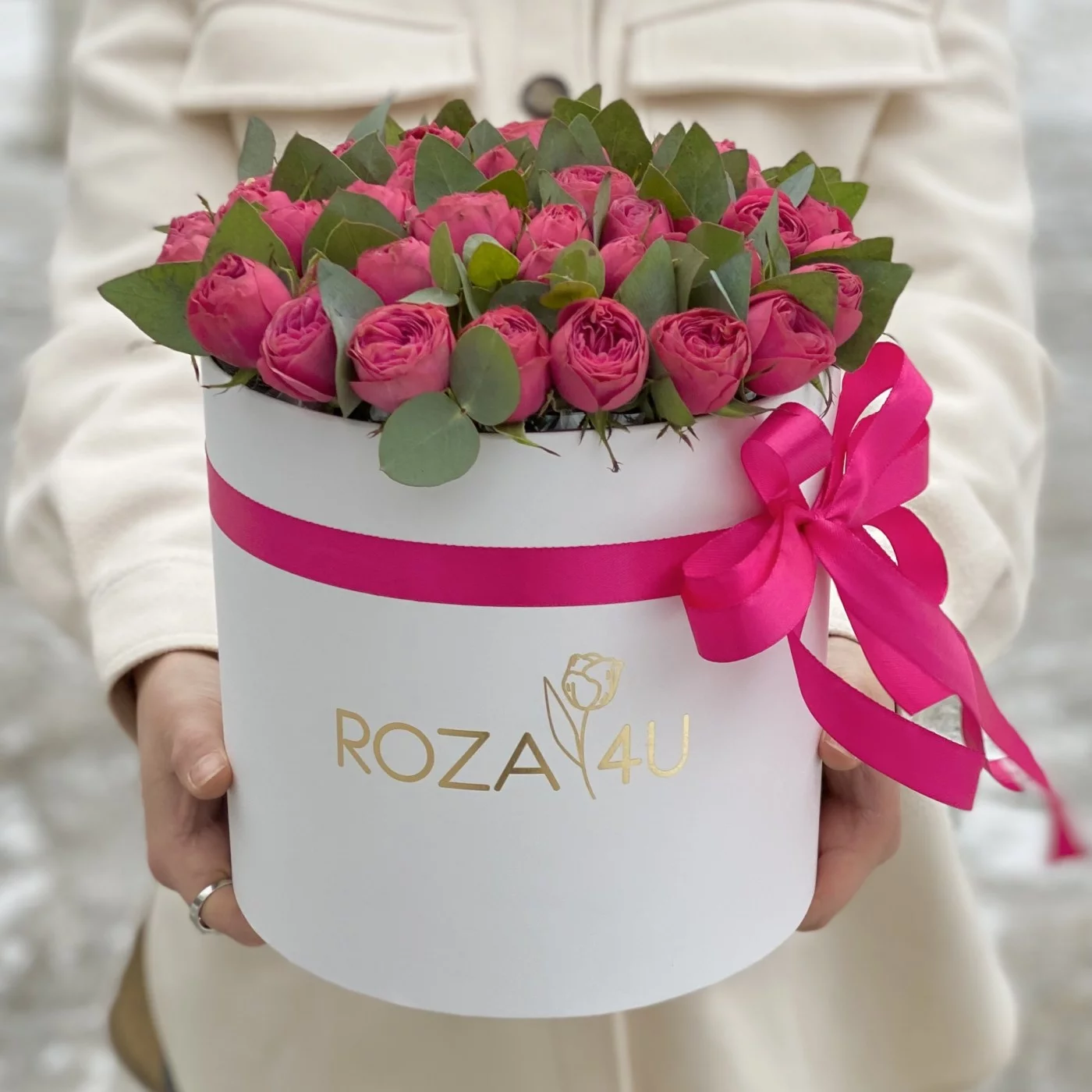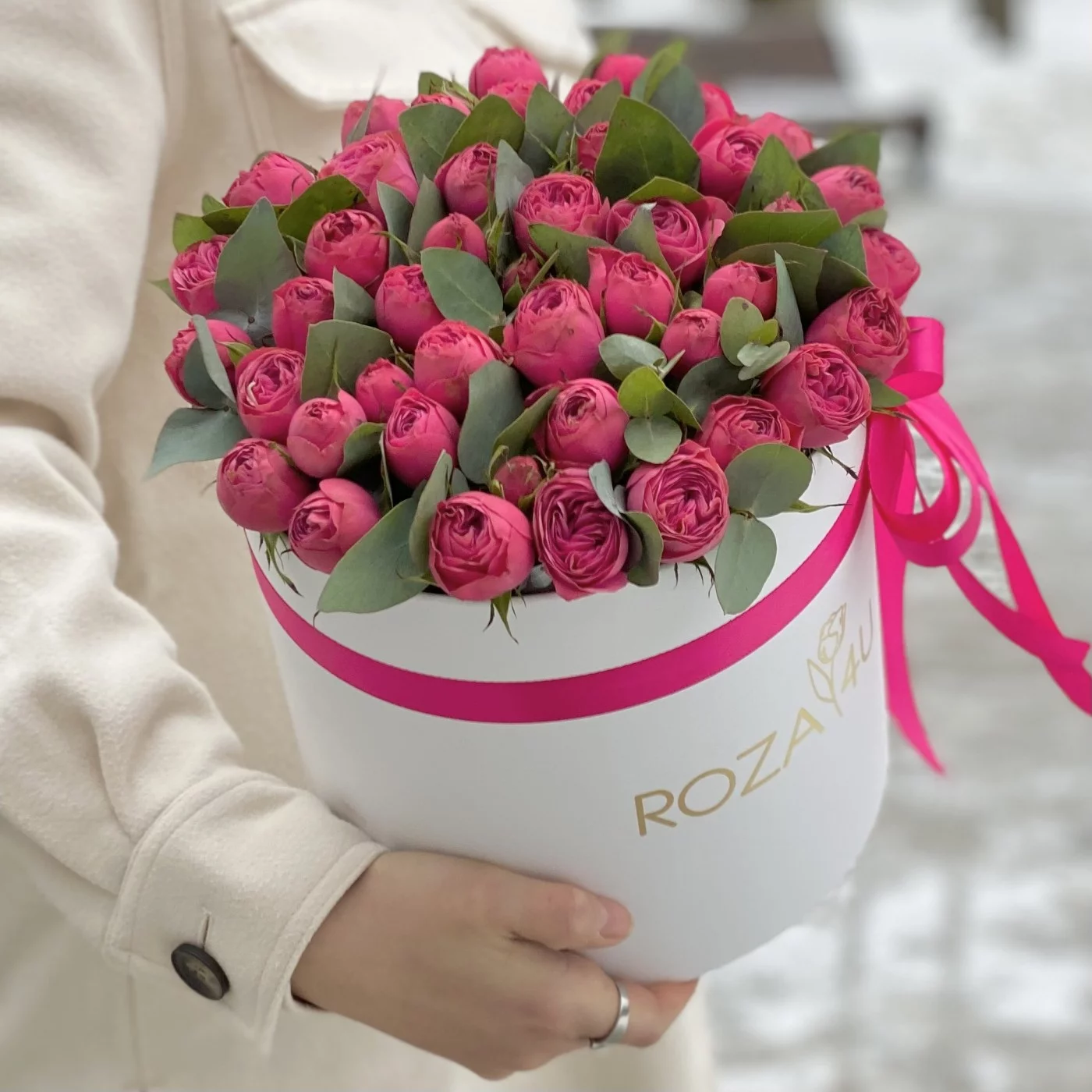 Яркие пионовидные розы в коробке Гранд Трендсеттер