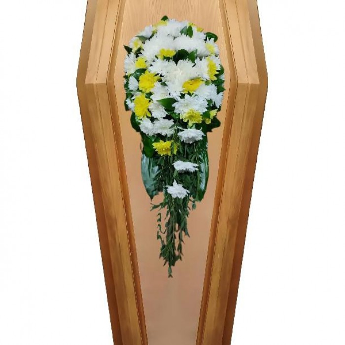 На фото представлена композиция на крышку гроба длинной 70 см.