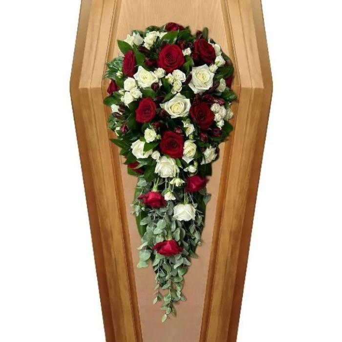На фото представлена композиция на крышку гроба длинной 70 см.