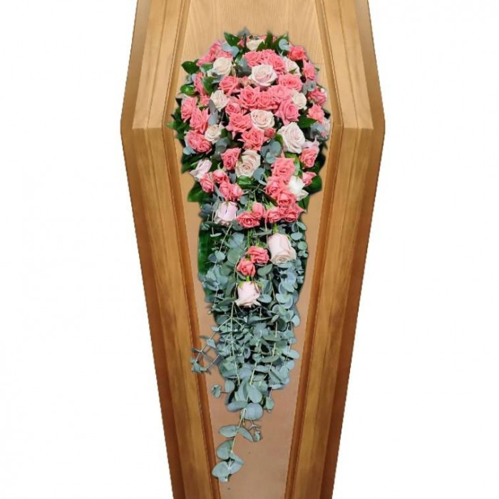На фото представлена композиция на крышку гроба длинной 80 см.