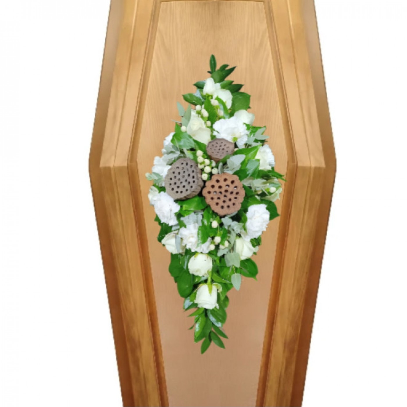 На фото представлена композиция на крышку гроба длинной 60 см.