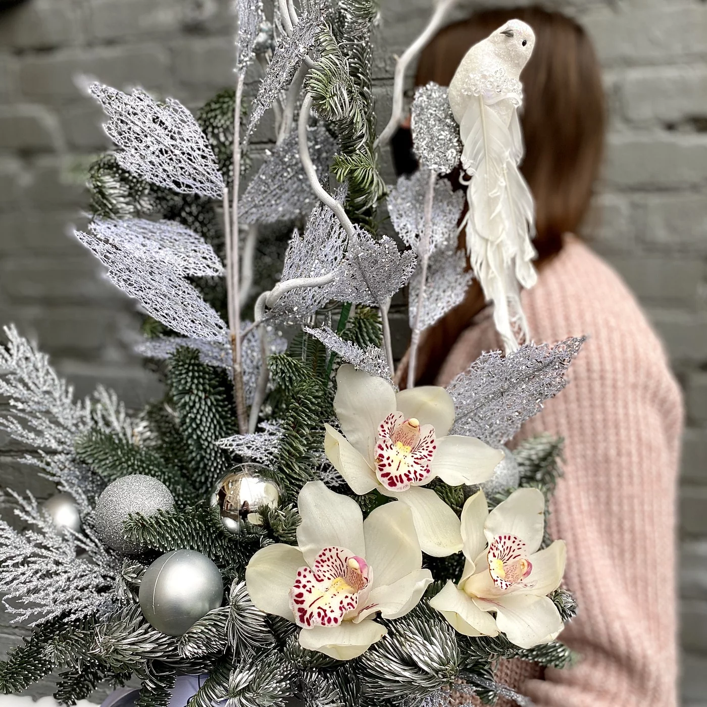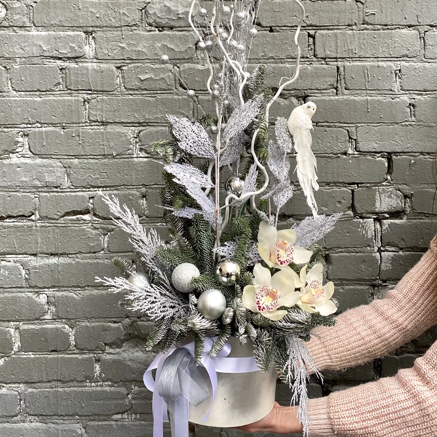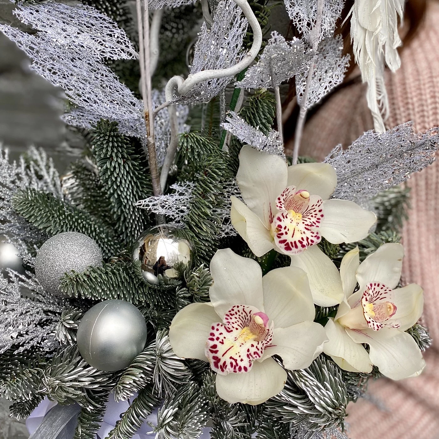 Большая новогодняя композиция прекрасно подойдет в качестве подарка на канун нового года. Такая коробка с живым нобилисом порадует получателя своей красотой.