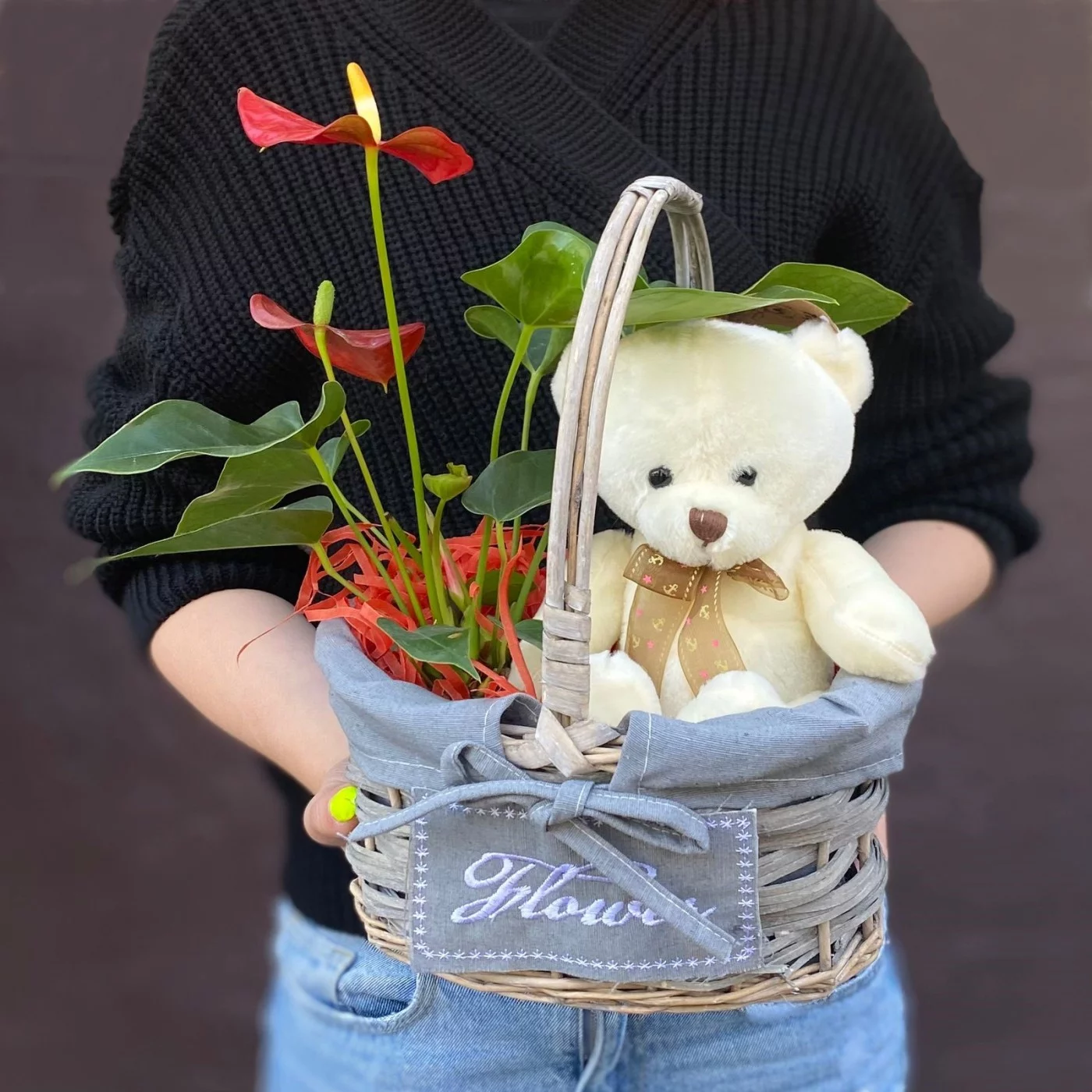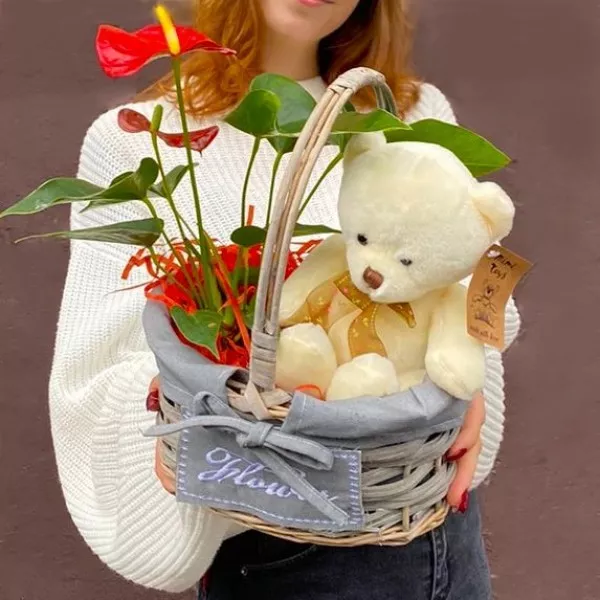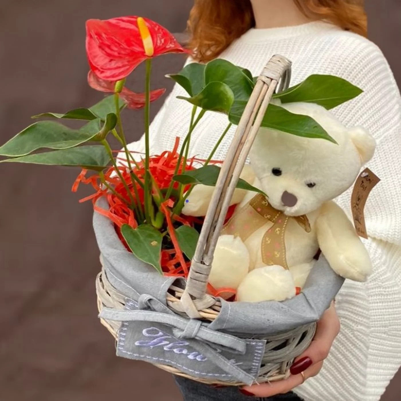 За три месяца мы доставили товар "Композиция с антуриумом и мишкой в корзине" по следующим локациям: