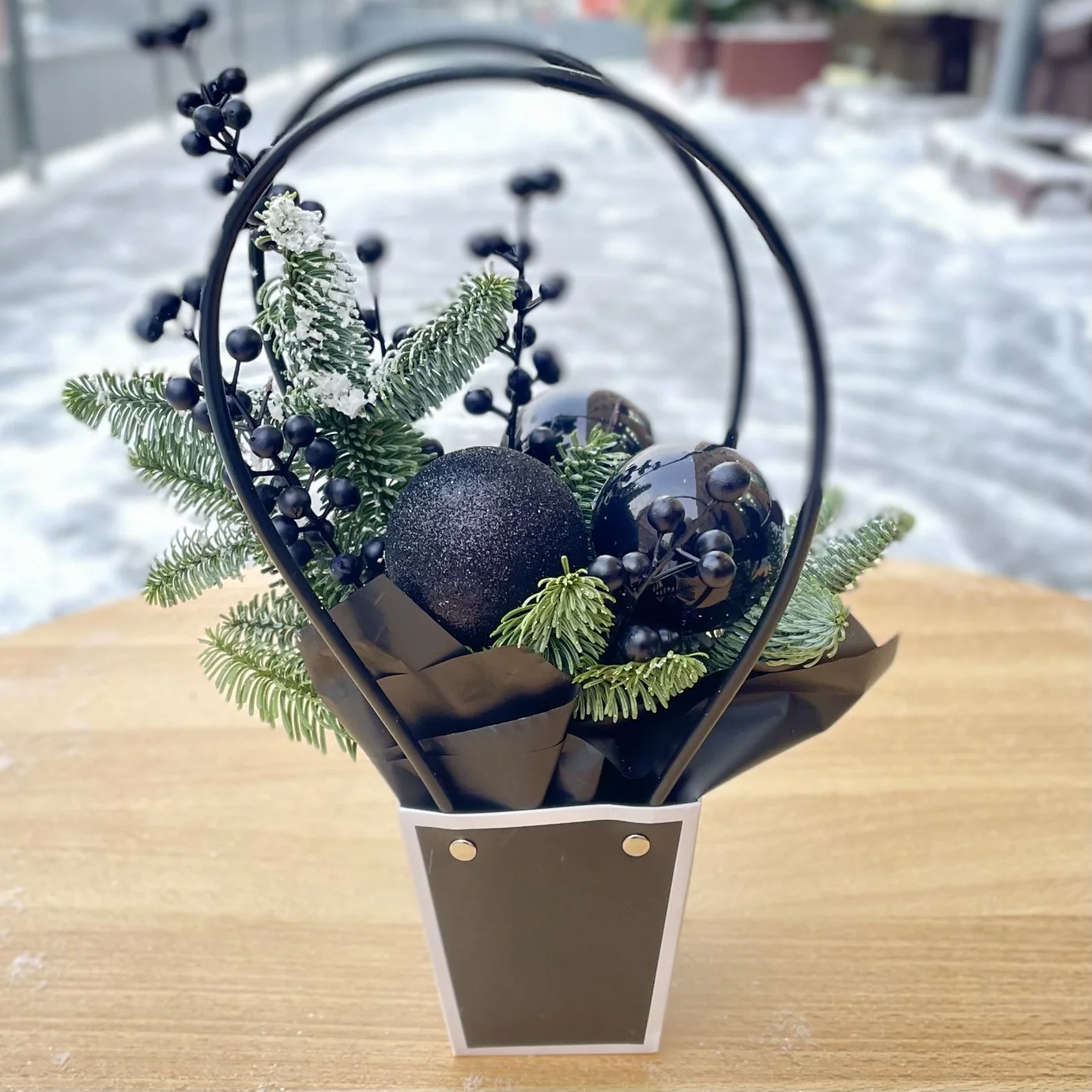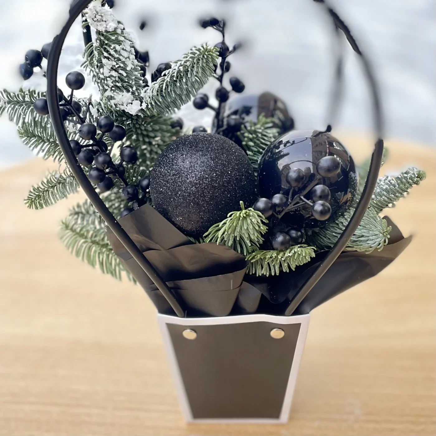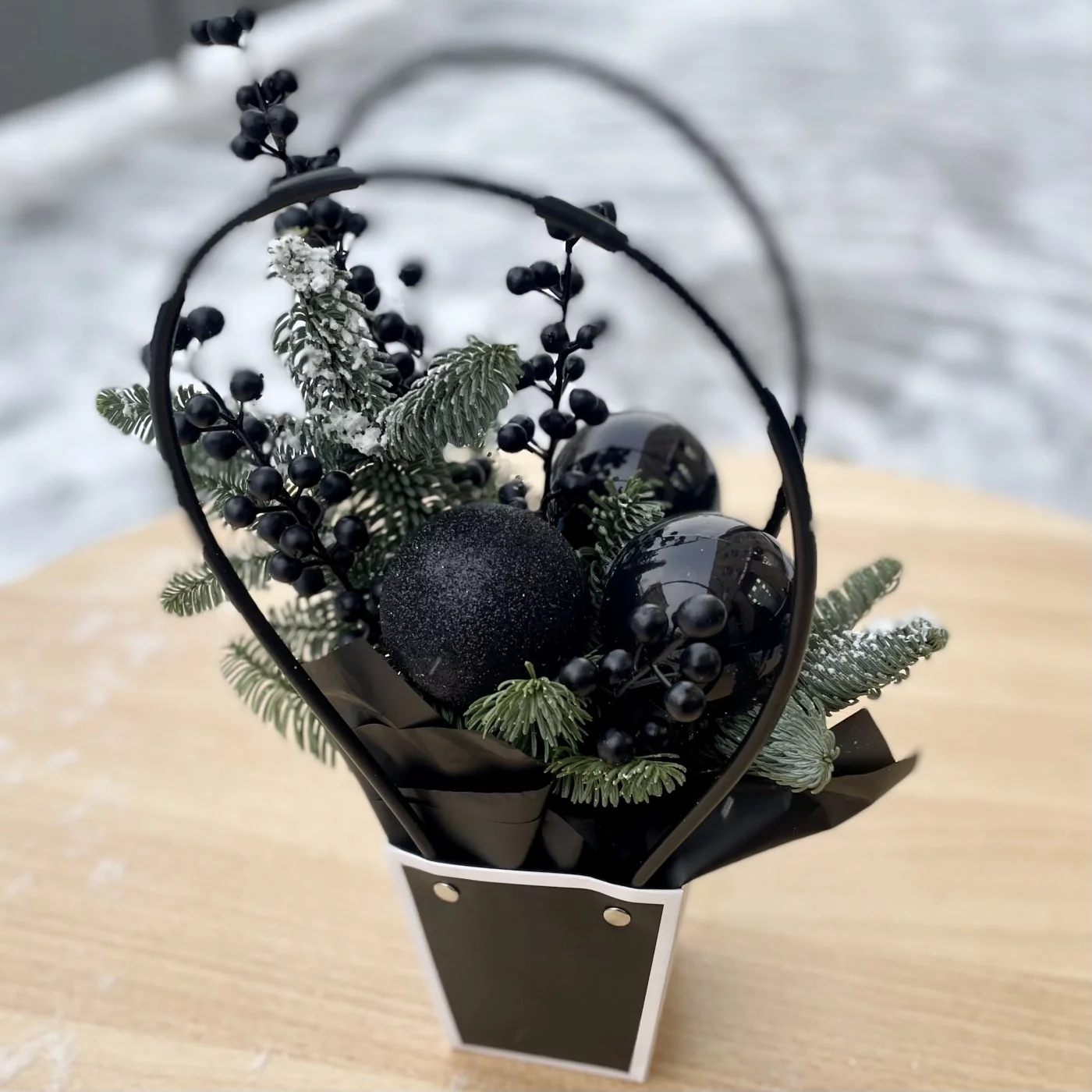 Стильная мини-композиция в черном цвете с ароматным нобилисом "Зимняя ночь".