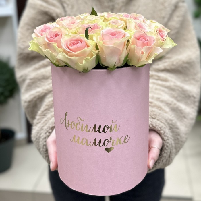 Букет из нежных роз в шляпной коробке Любимой Мамочке станет оригинальным подарком, в День Матери.