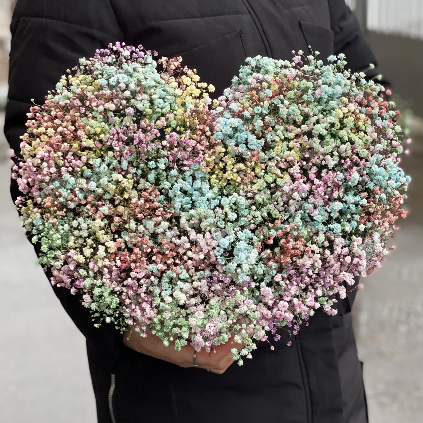 Сердце с радужной гипсофилой