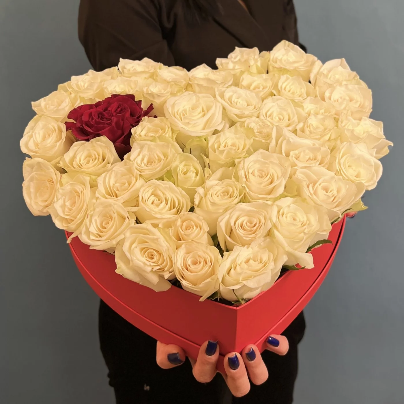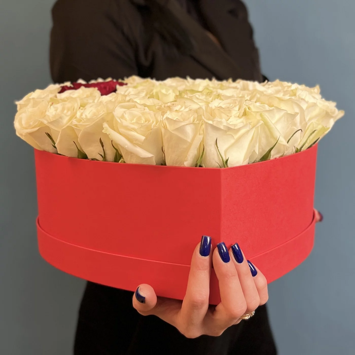 Коробка Сердце из Роз — это элегантная и романтичная композиция, в которой главную роль играют свежие розы, аккуратно уложенные в коробку в форме сердца. Этот букет станет прекрасным подарком для выражения любви и восхищения.