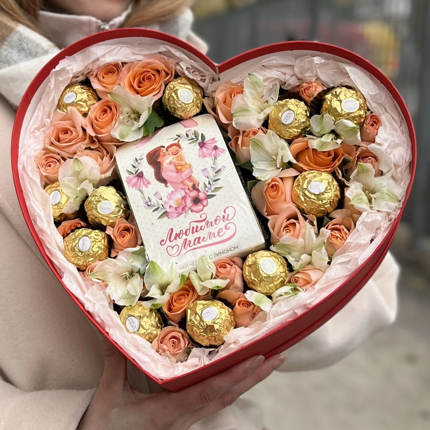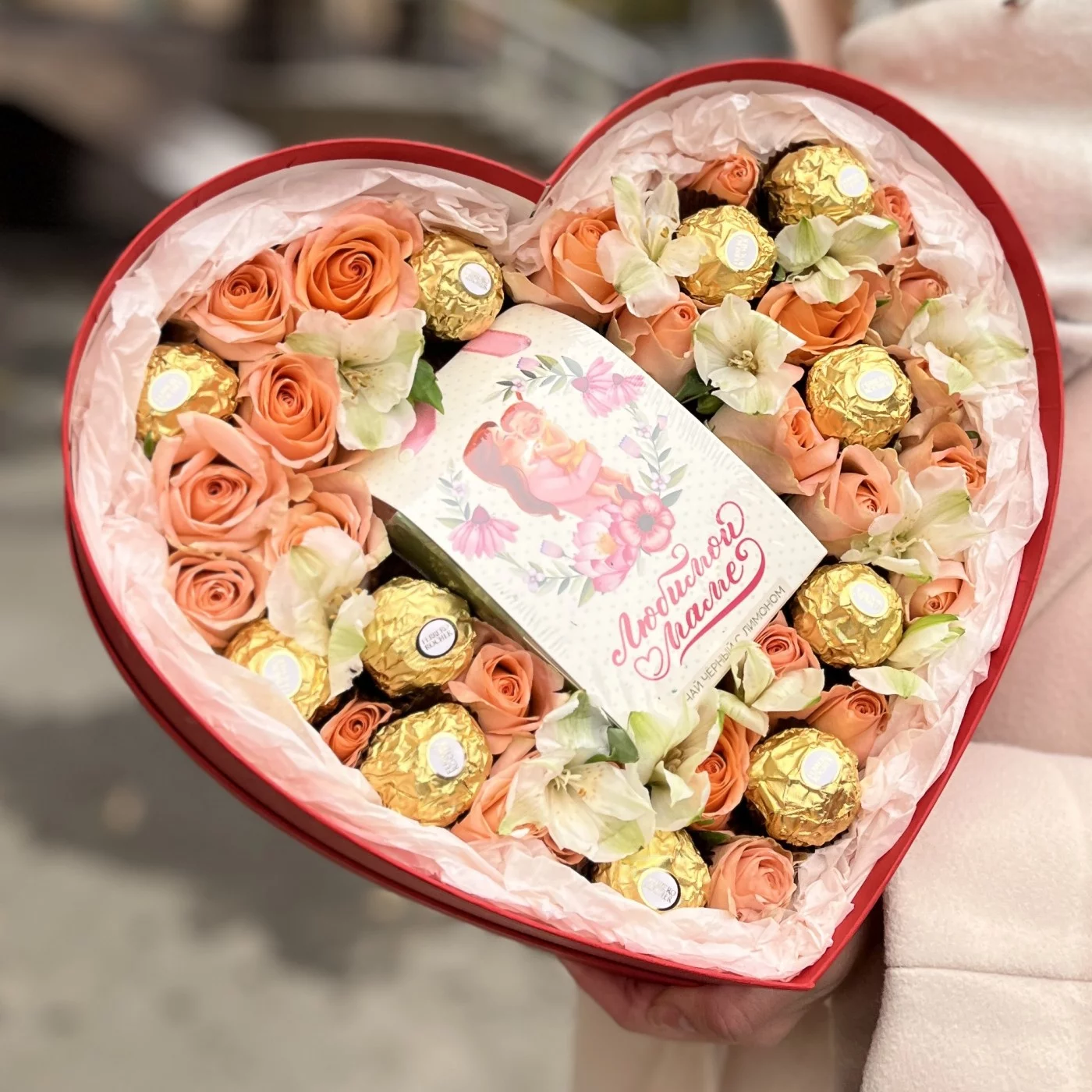 Коробка сердце с розами и конфетами Любимой Маме