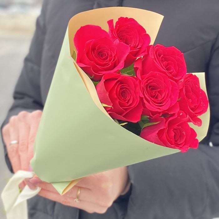Корпоративный букет из 7 малиновых роз Такаци