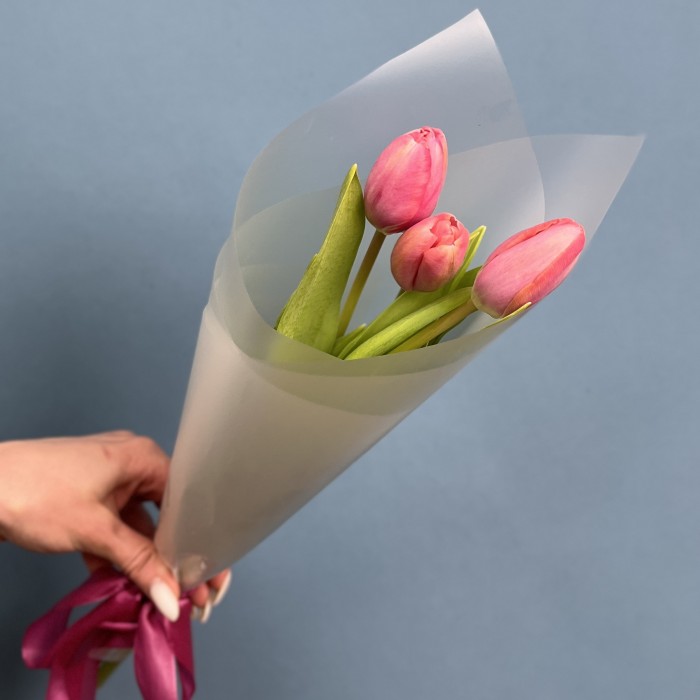 Корпоративный букет из 3 коралловых тюльпанов — это стильный и лаконичный подарок, который отлично подойдет для поздравлений по случаю достижения, признания заслуг коллеги или даже в качестве небольшого знака внимания.