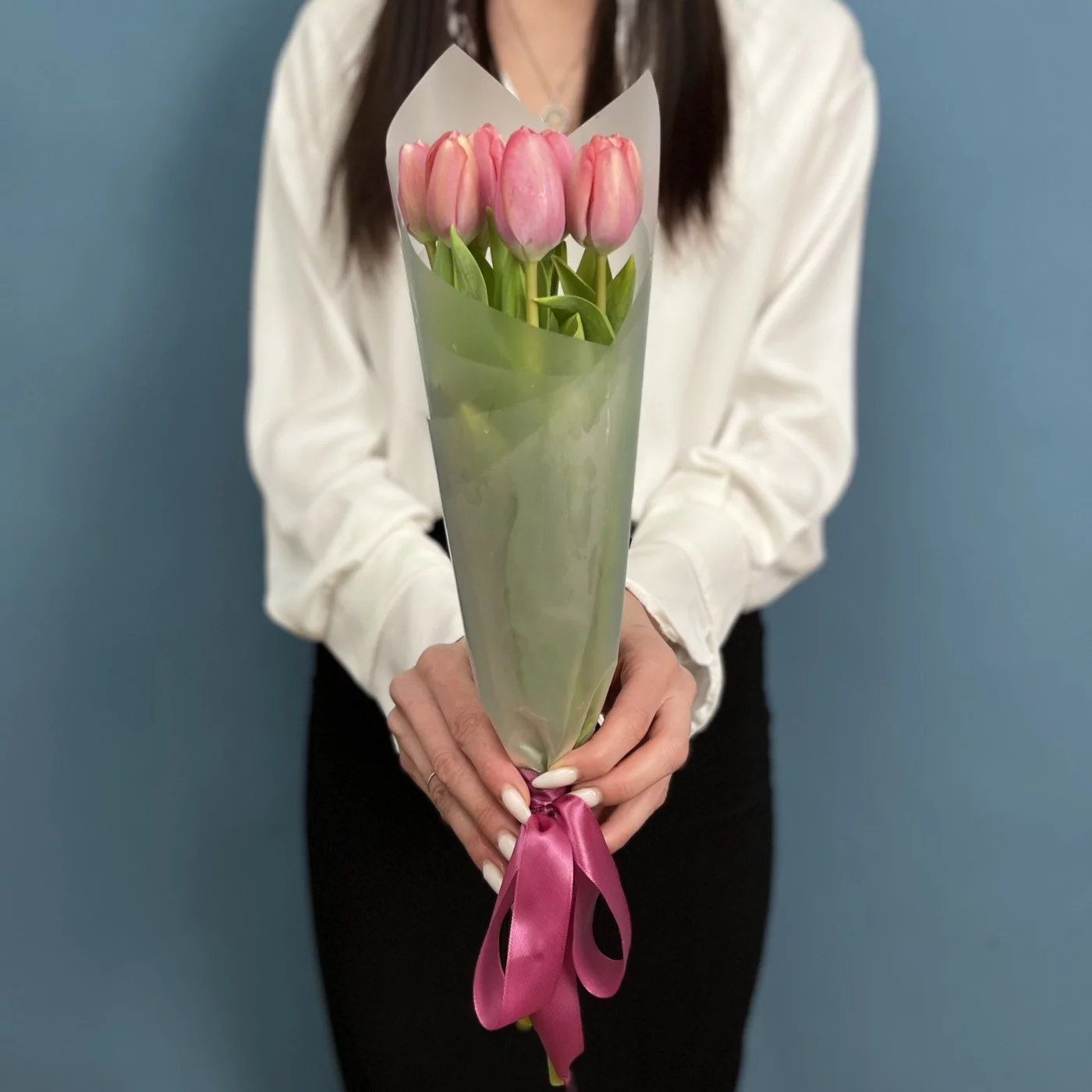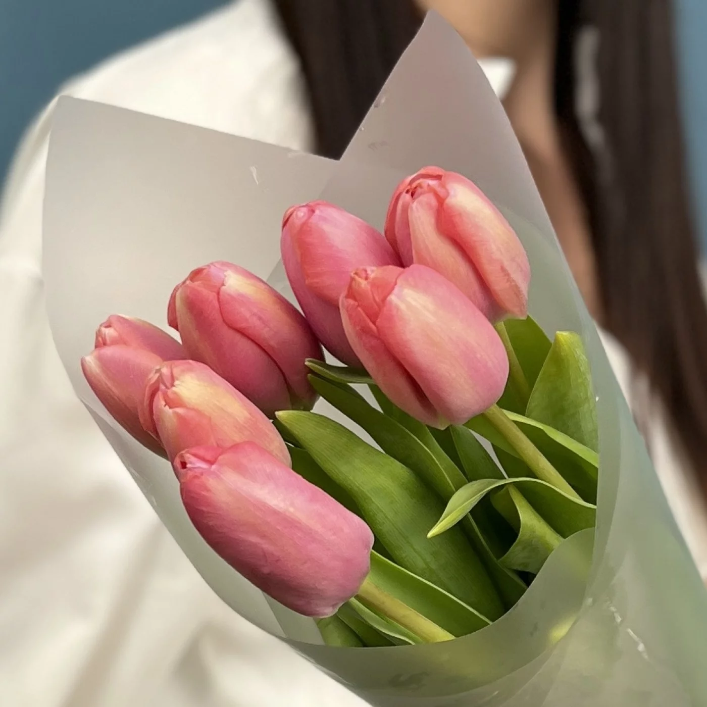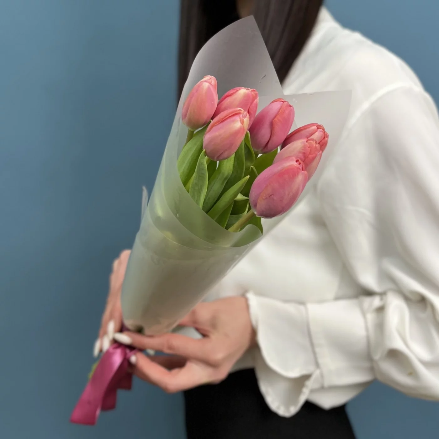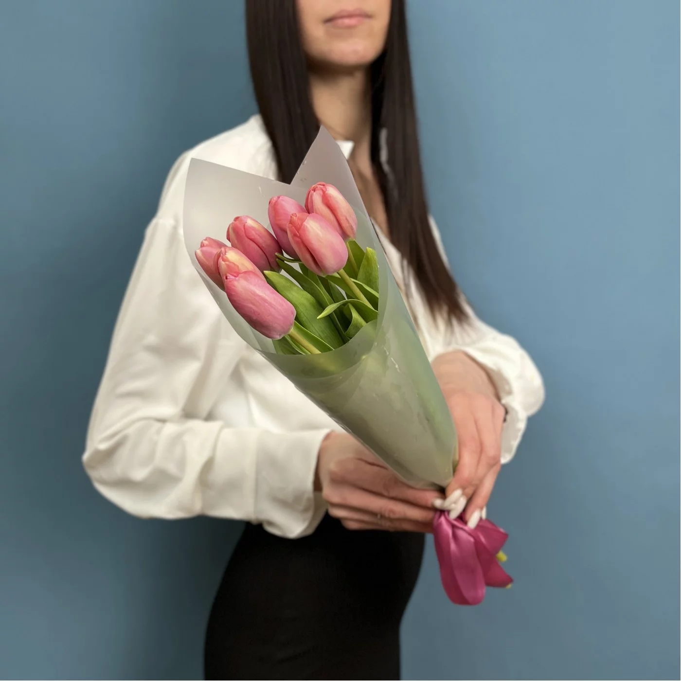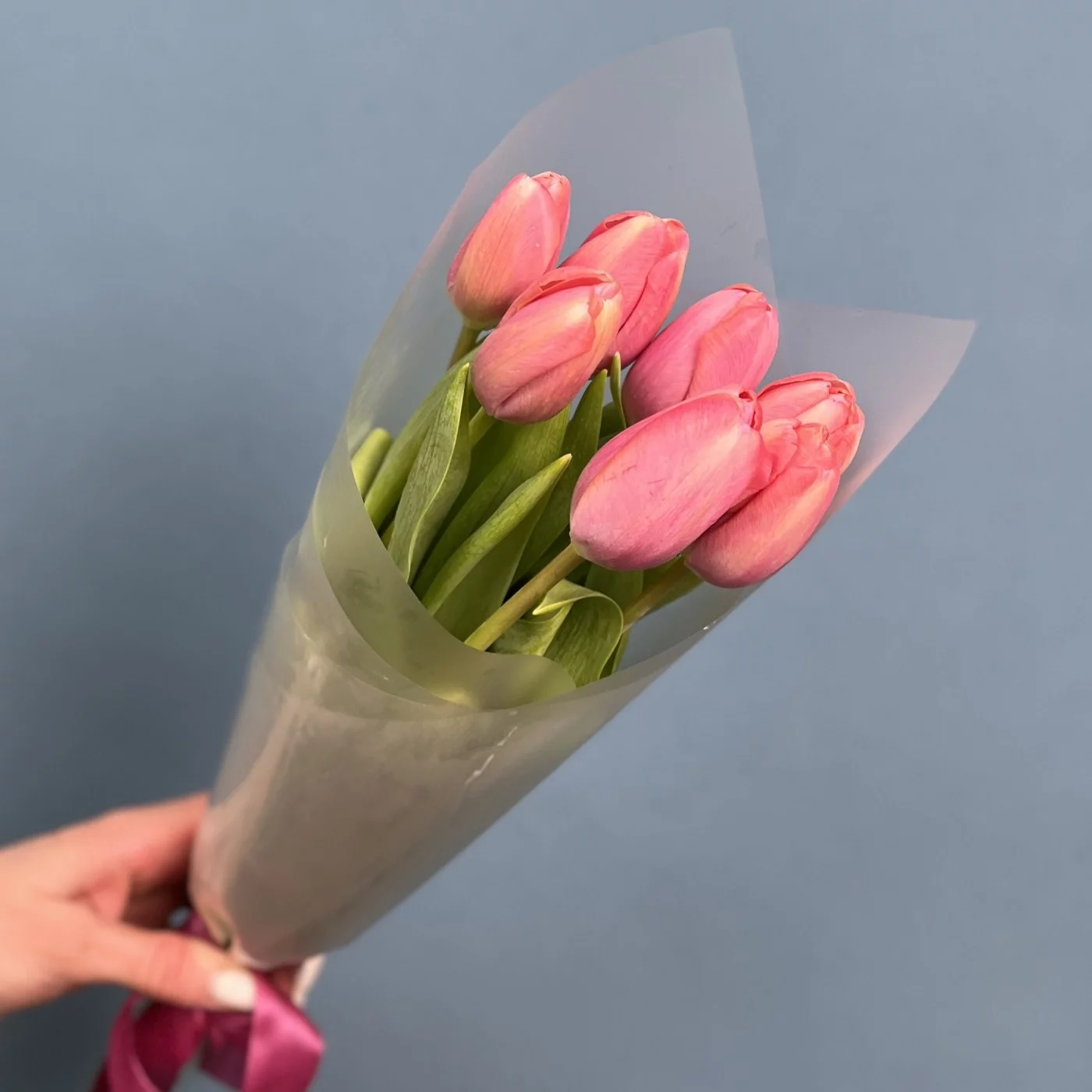 Корпоративный букет из 7 коралловых тюльпанов — это элегантное и эффектное решение для оформления офисного пространства или подарка коллегам.