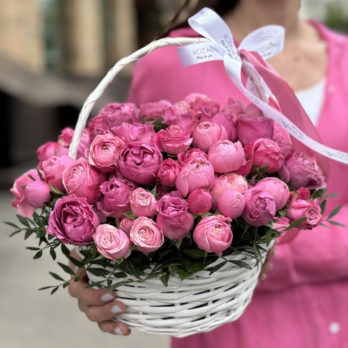 В этом букете мы скомбинировали кустовые розы ярких оттенков. А чтобы композиция смотрелась еще интереснее, мы дополнили ее милой корзинкой.