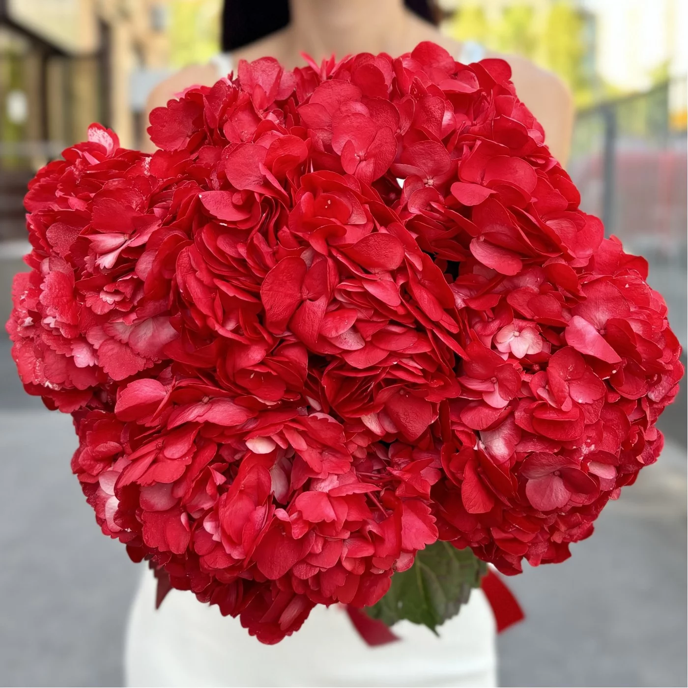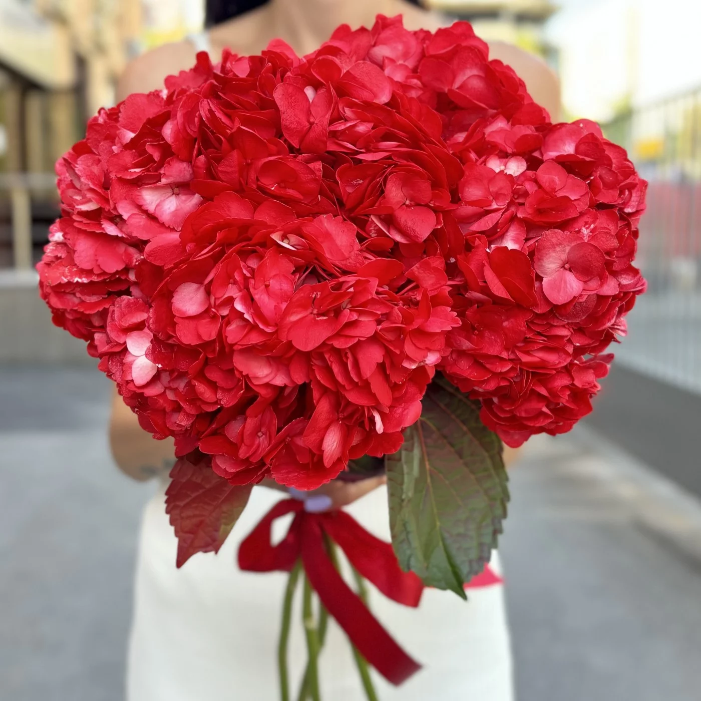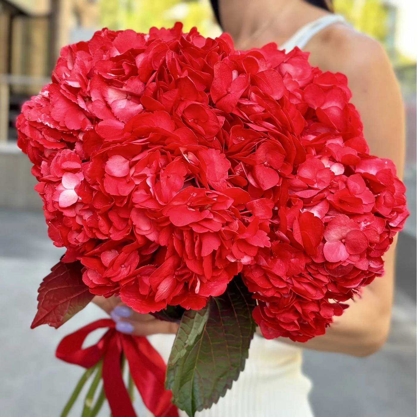 Букет с красной гортензией — это изысканное и яркое floral-оформление, которое привлекает внимание своим насыщенным цветом и объёмными соцветиями. Такой букет станет великолепным дополнением к любому торжеству или праздничному событию, а также будет отличным подарком для любимых и близких.