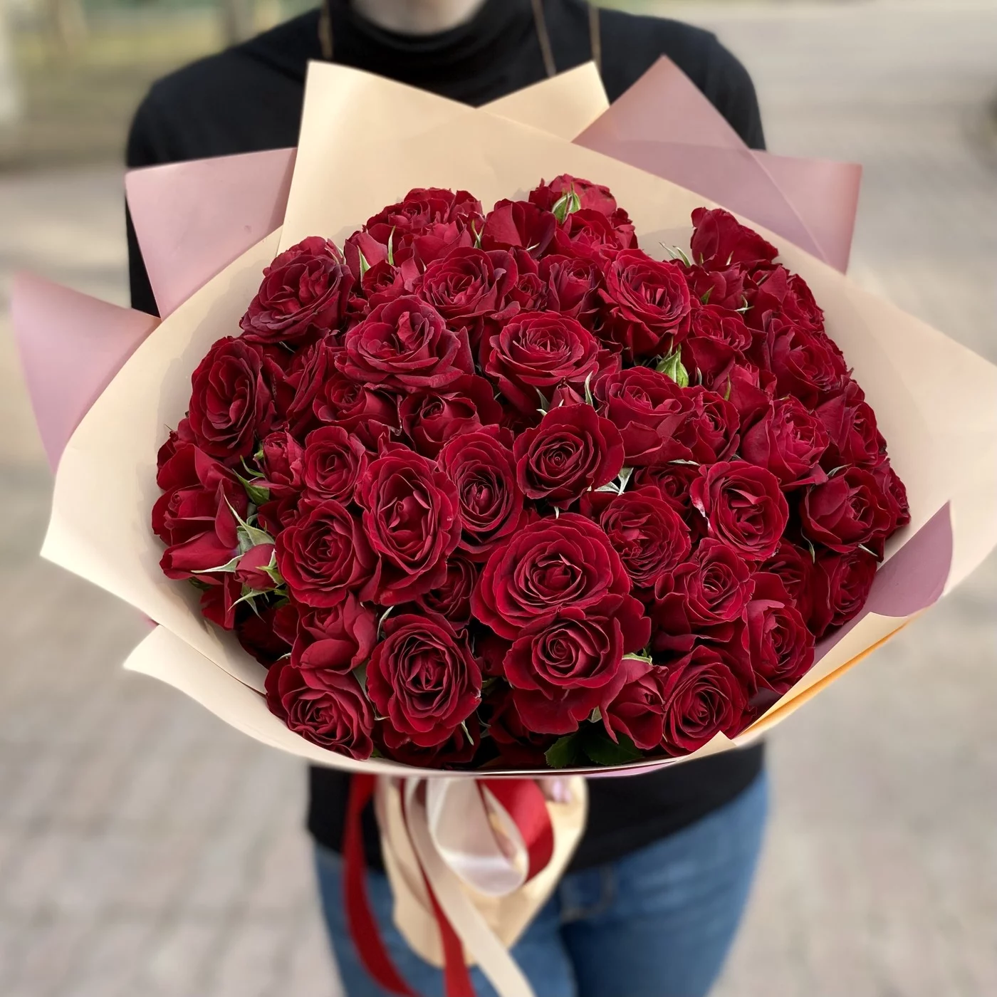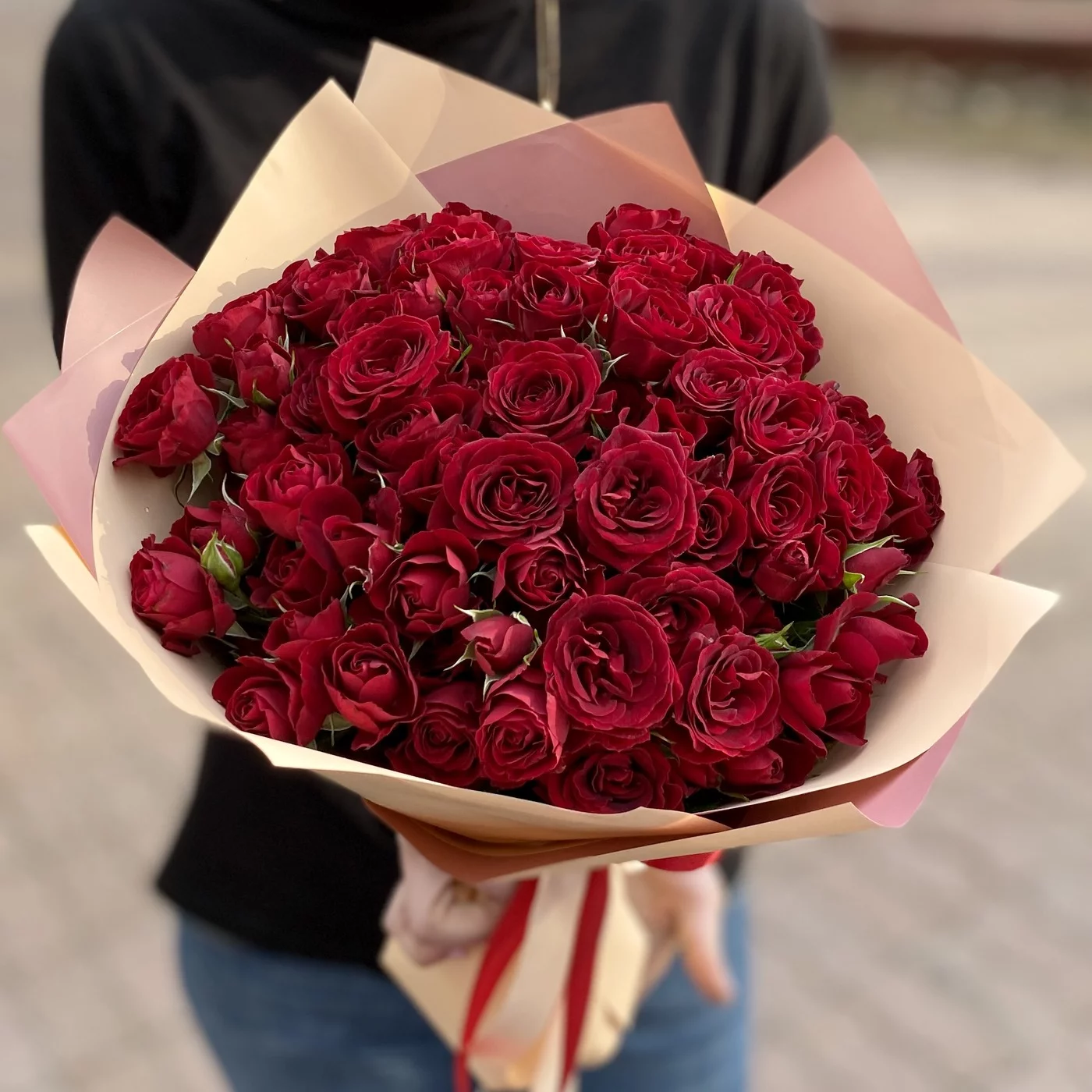 выразить словами. Роскошный букет из 25 стеблей кустовых красных роз высшего качества, имеющийся в продаже в нашем магазине, подходит для